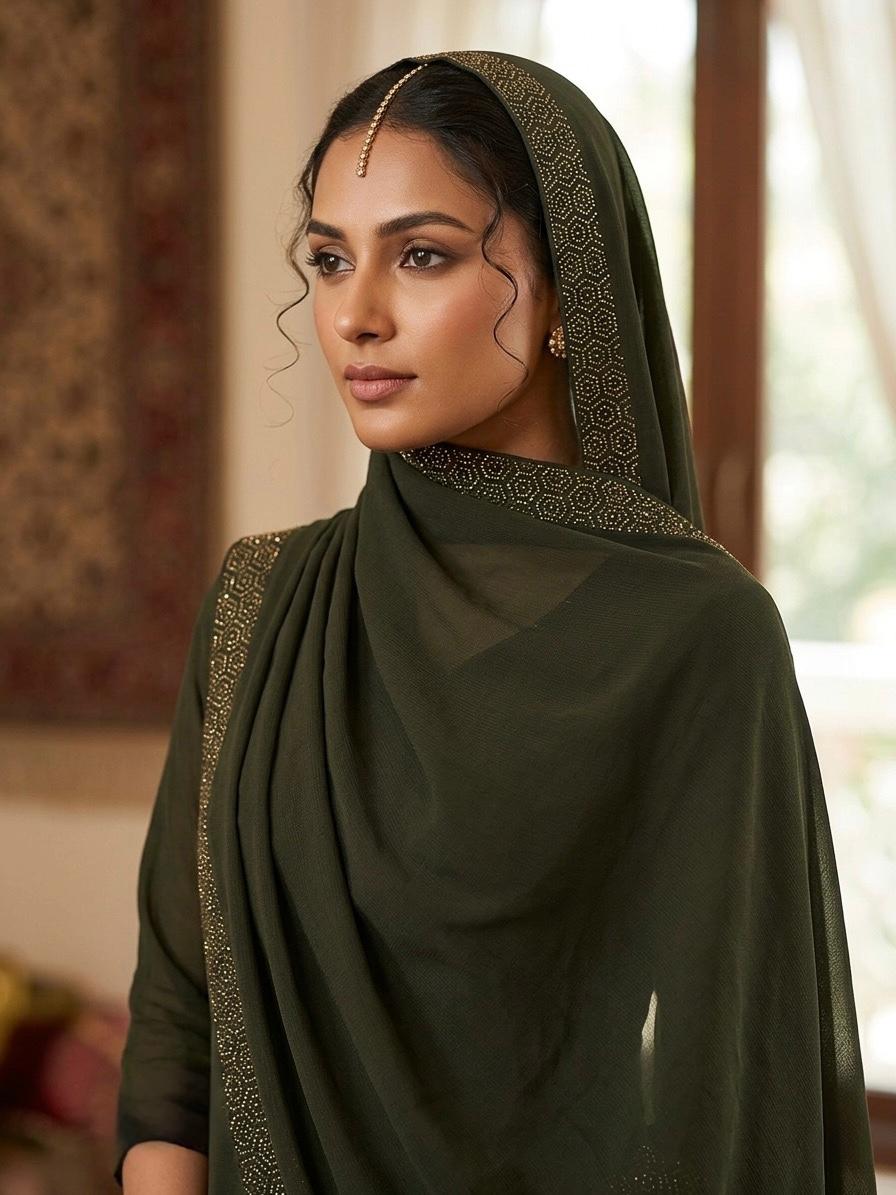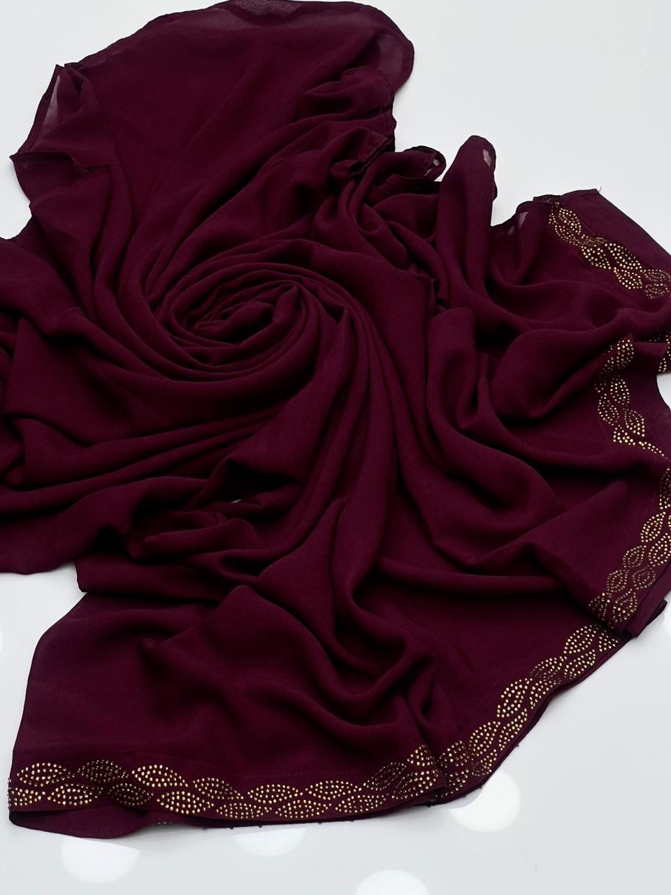 Korean Georgette Stones Work 1 Sided Border Chadar
