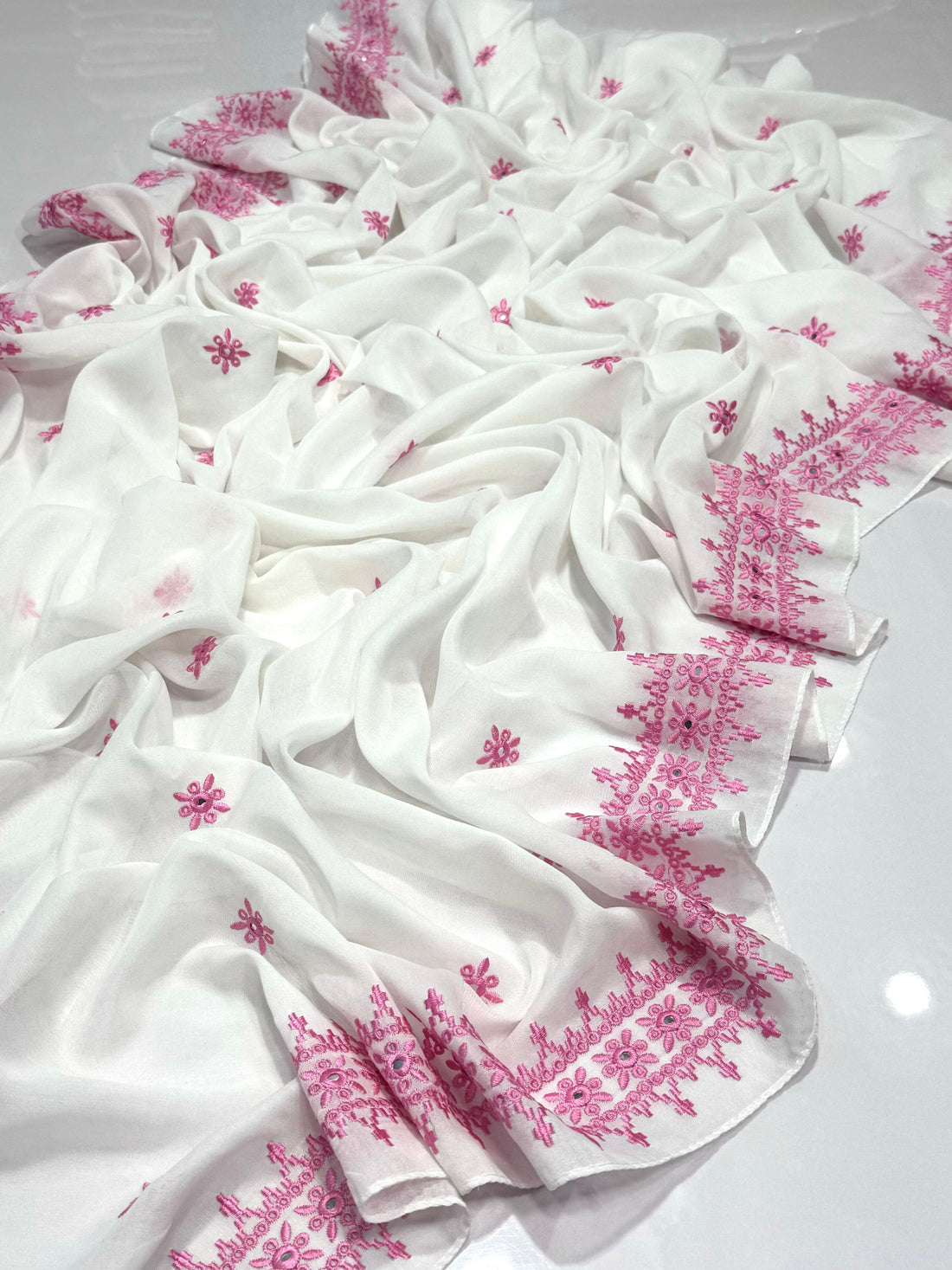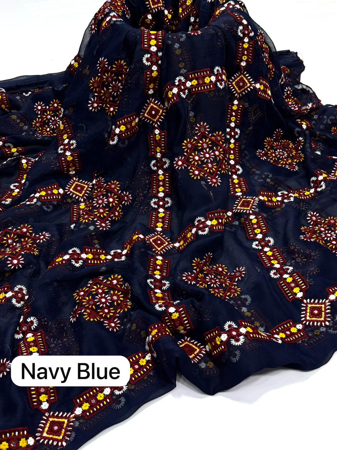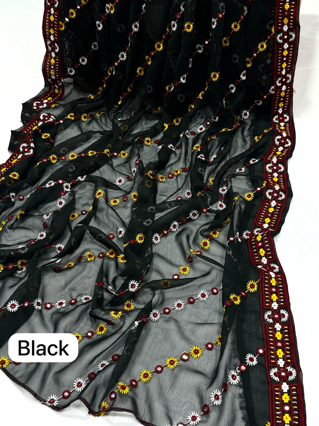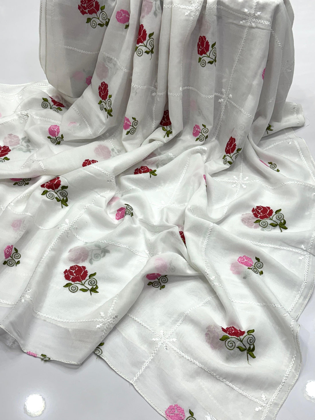 Cross Stitch Embroidered Chiffon Dupatte