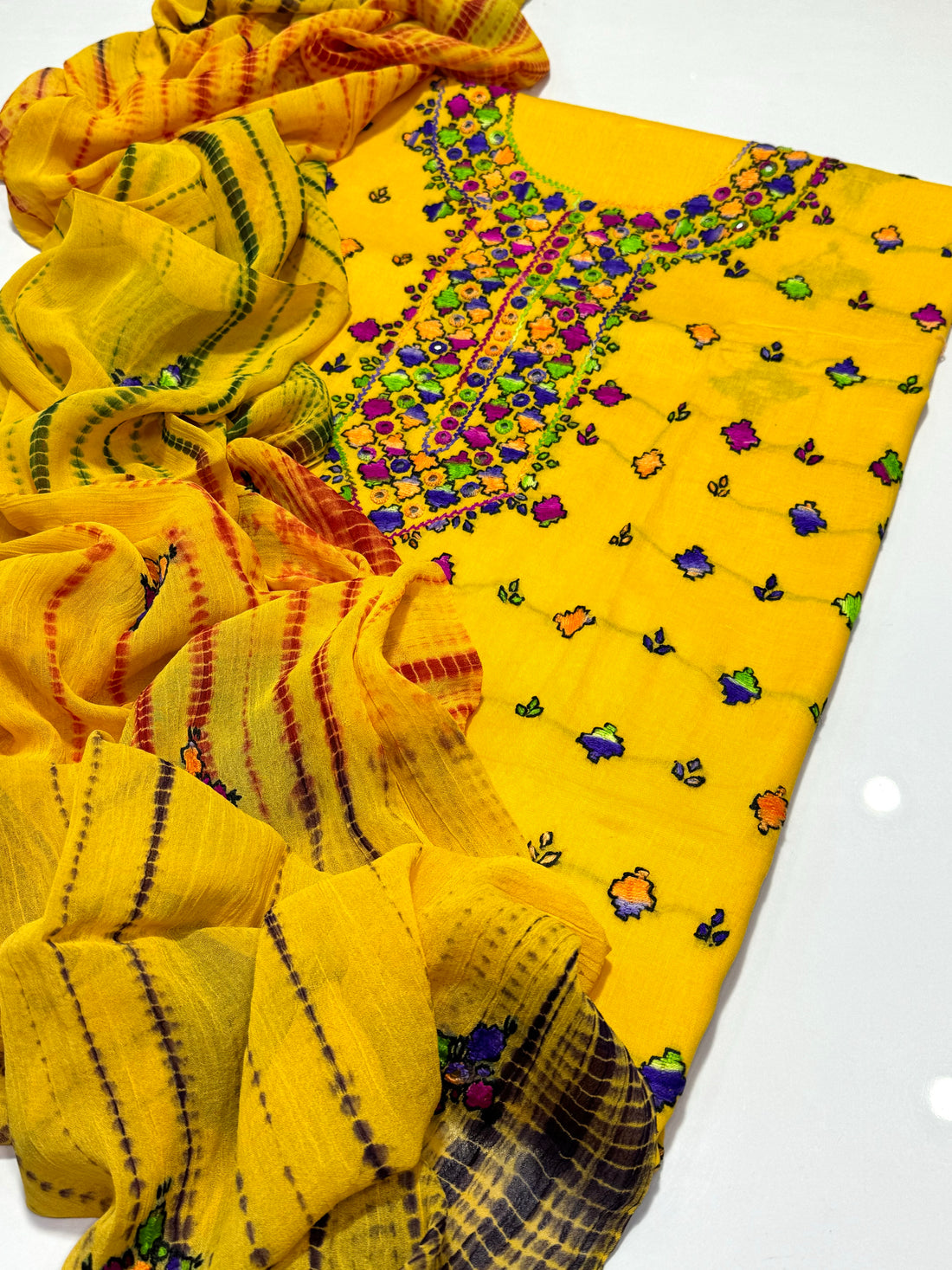 Lawn EiD Collection Handmade Multani Unstitched Suits With Chiffon Tie and Die Embroidered Dupatta...