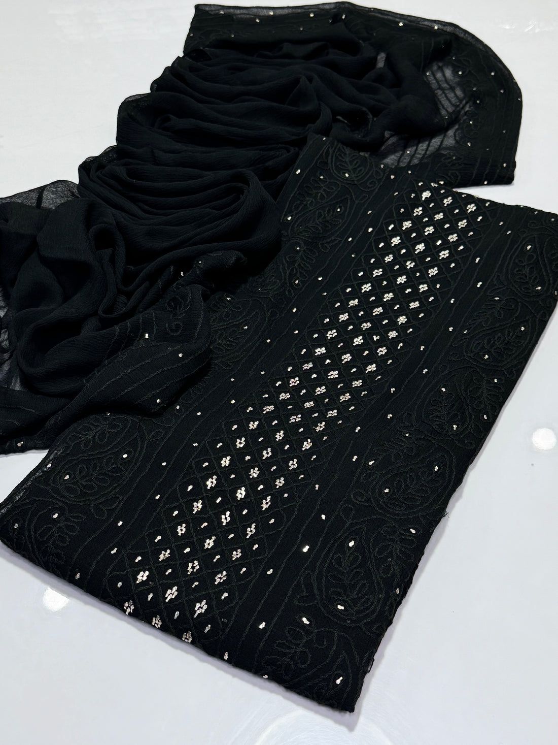 Mukesh Collection Handmade Button mukesh work on soft Shifoon full shirt jall with 2...