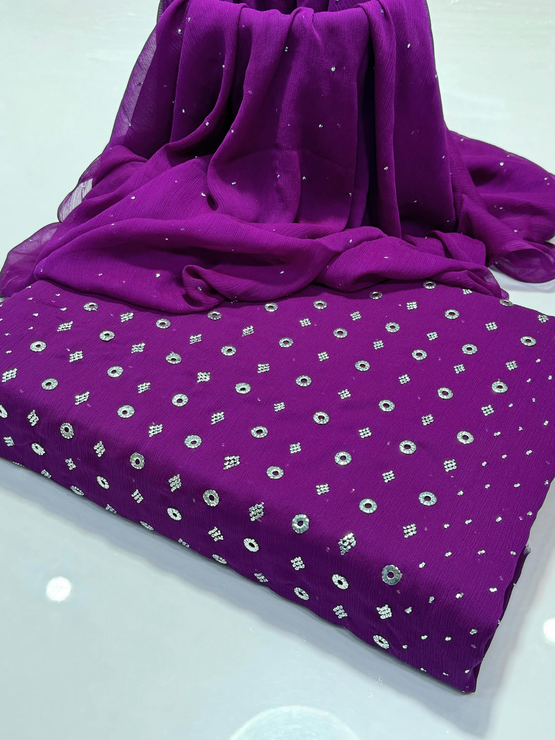Handmade Button Mukesh Work On Soft Chiffon Full Shirt jall with All Over Mukesh...