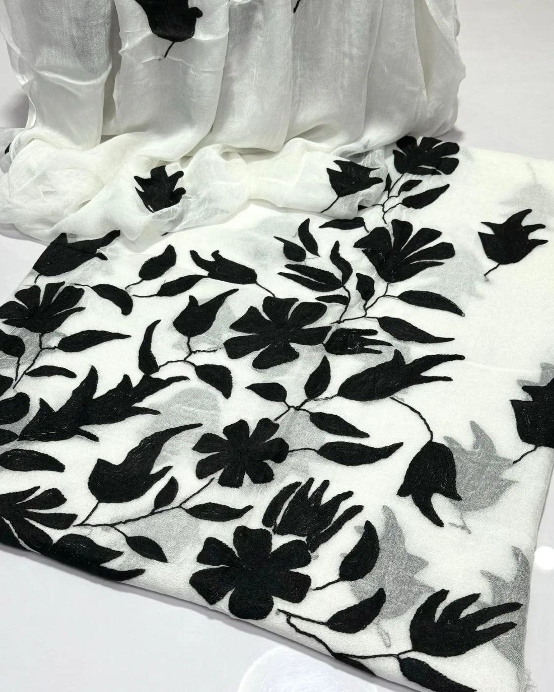 Most demanded article ✅Organza digital embroidered & pearls front back same ✅Organza digital...