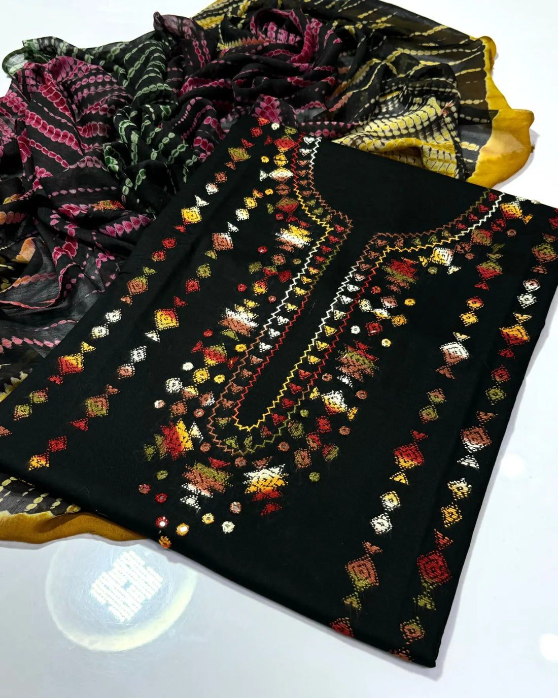 Swiss Lawn FabricElegant And Beautiful Machine Cross Sticht EmbroideredChadarExcellent QualityLittle Bit See Through StuffFull Size...
