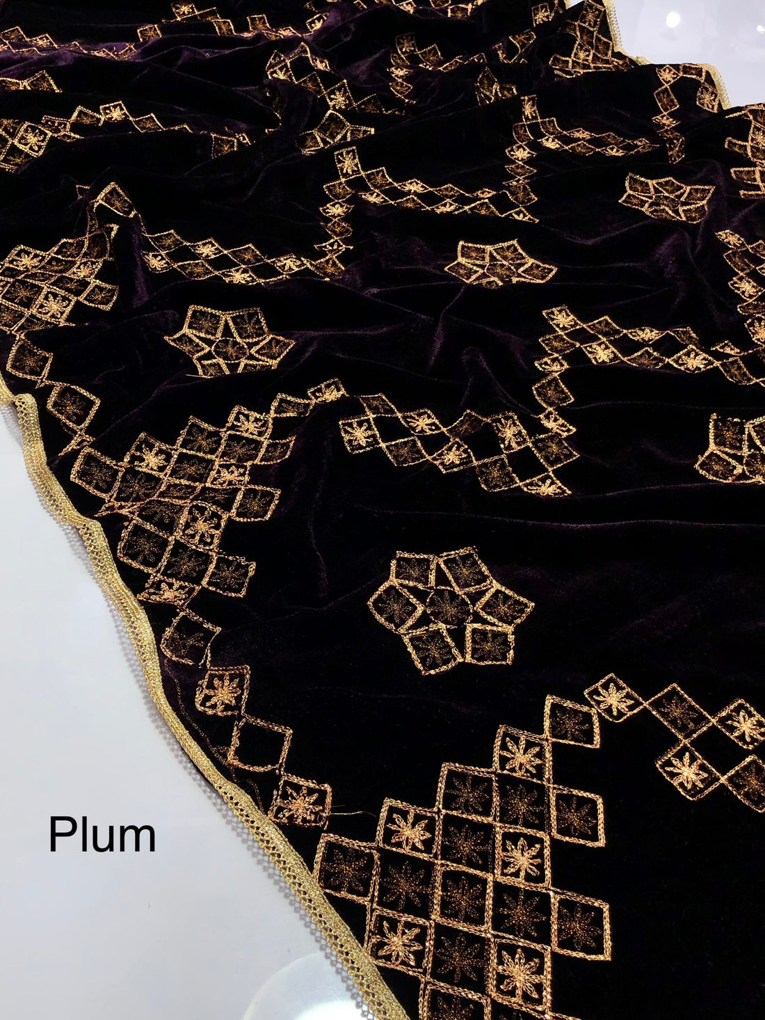 Velvet ShawlElegant And Beautiful Machine Sequence Embroidery 🪡Excellent Quality Velvet5 Colors Available2.4 Yard Length1.15 Yard...