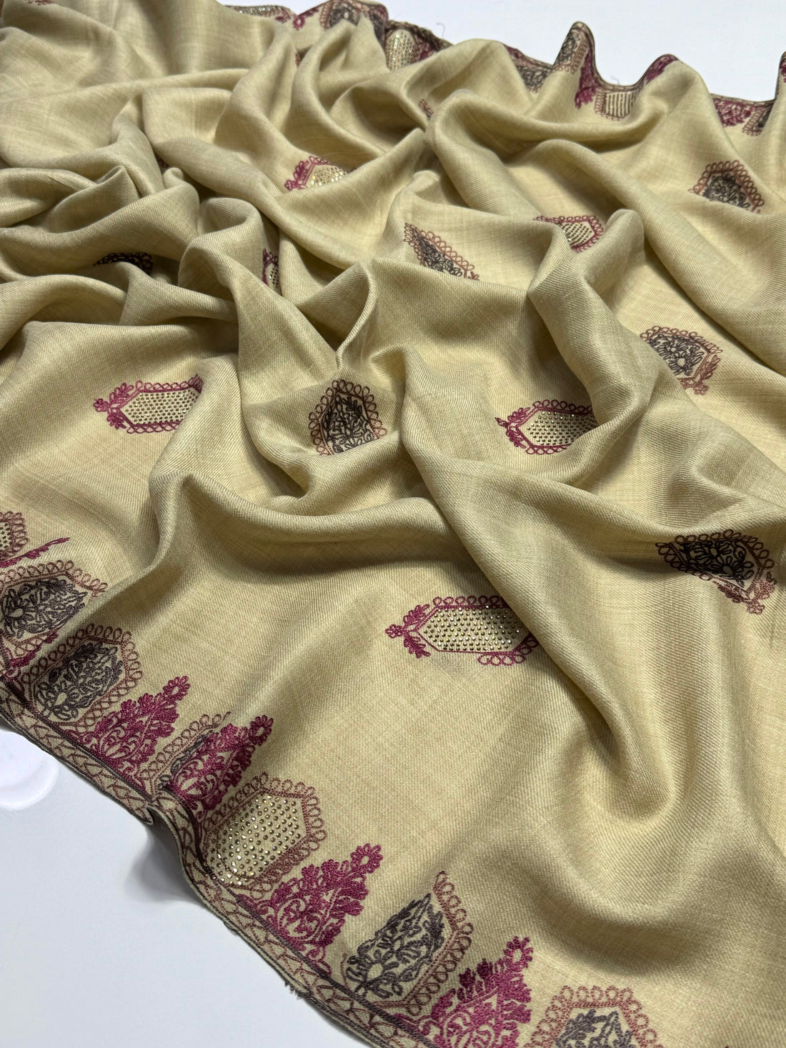 Pure Pashmina Shawl Elegant And Beautiful Embroidery + Stones 🪡 Excellent Quality Pashmina Light Weight...