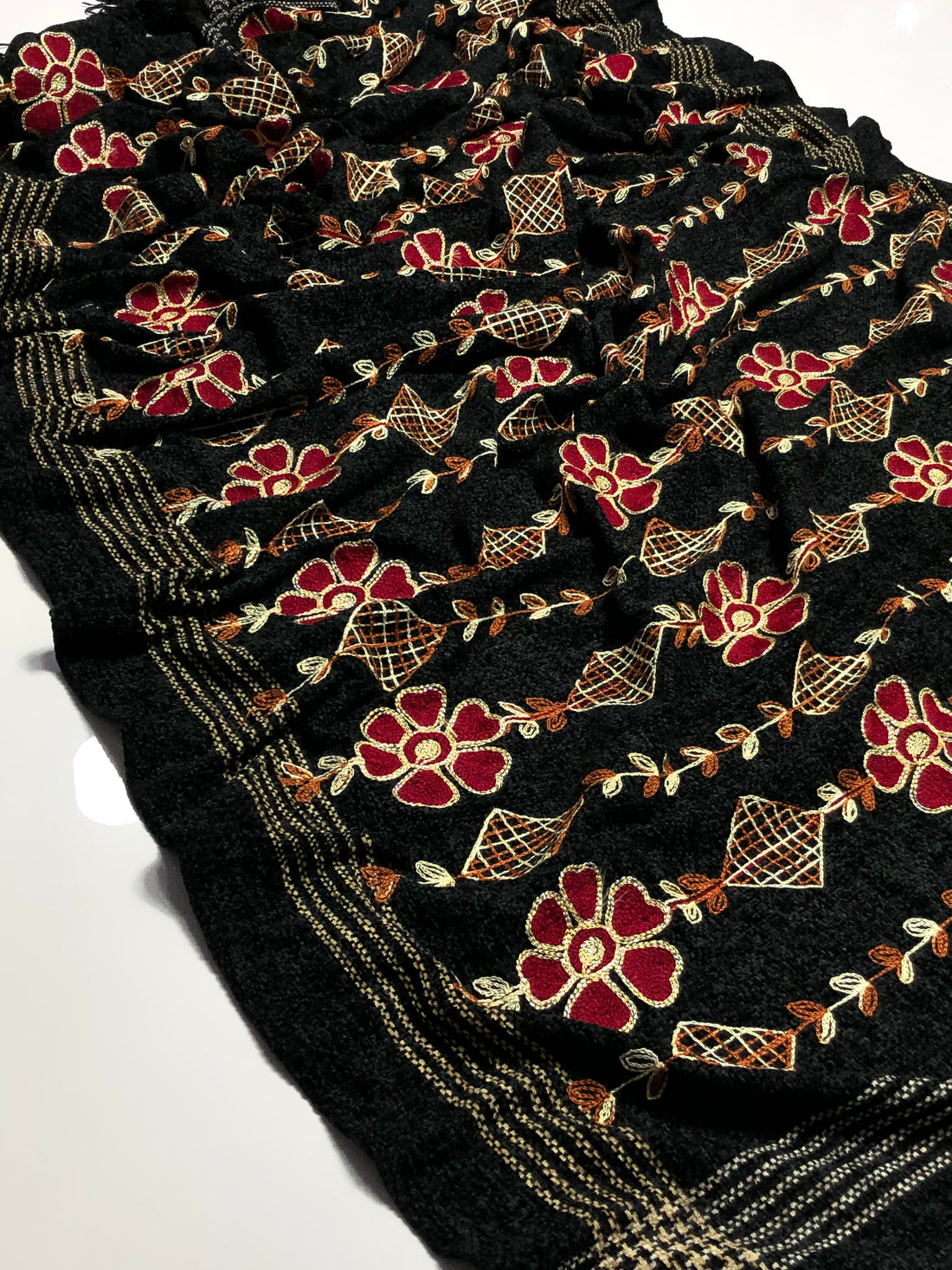 Khaddi Velvet Shawl Elegant And Beautiful Overall Embroidery On Shawl Excellent Quality Stuff Full Warm...