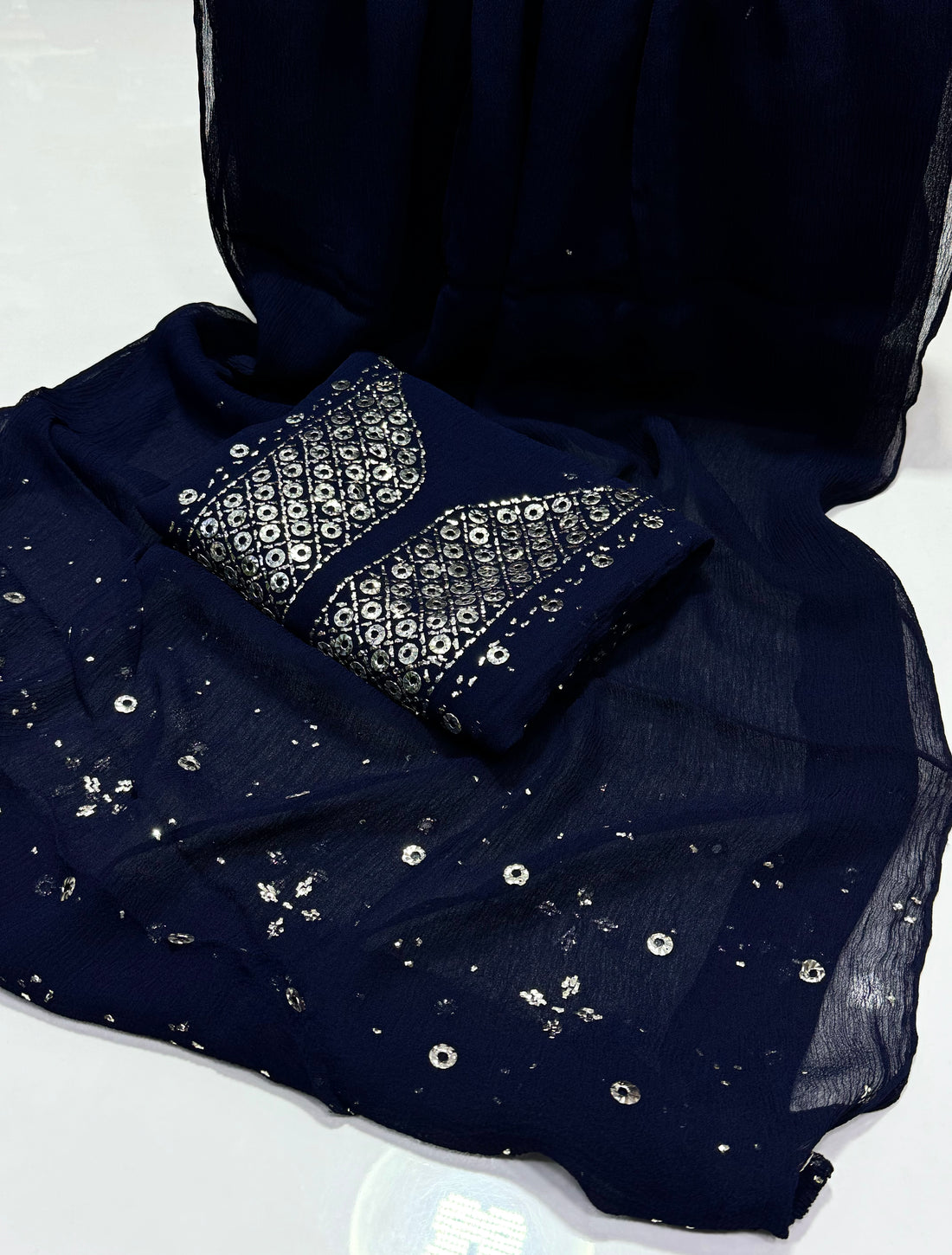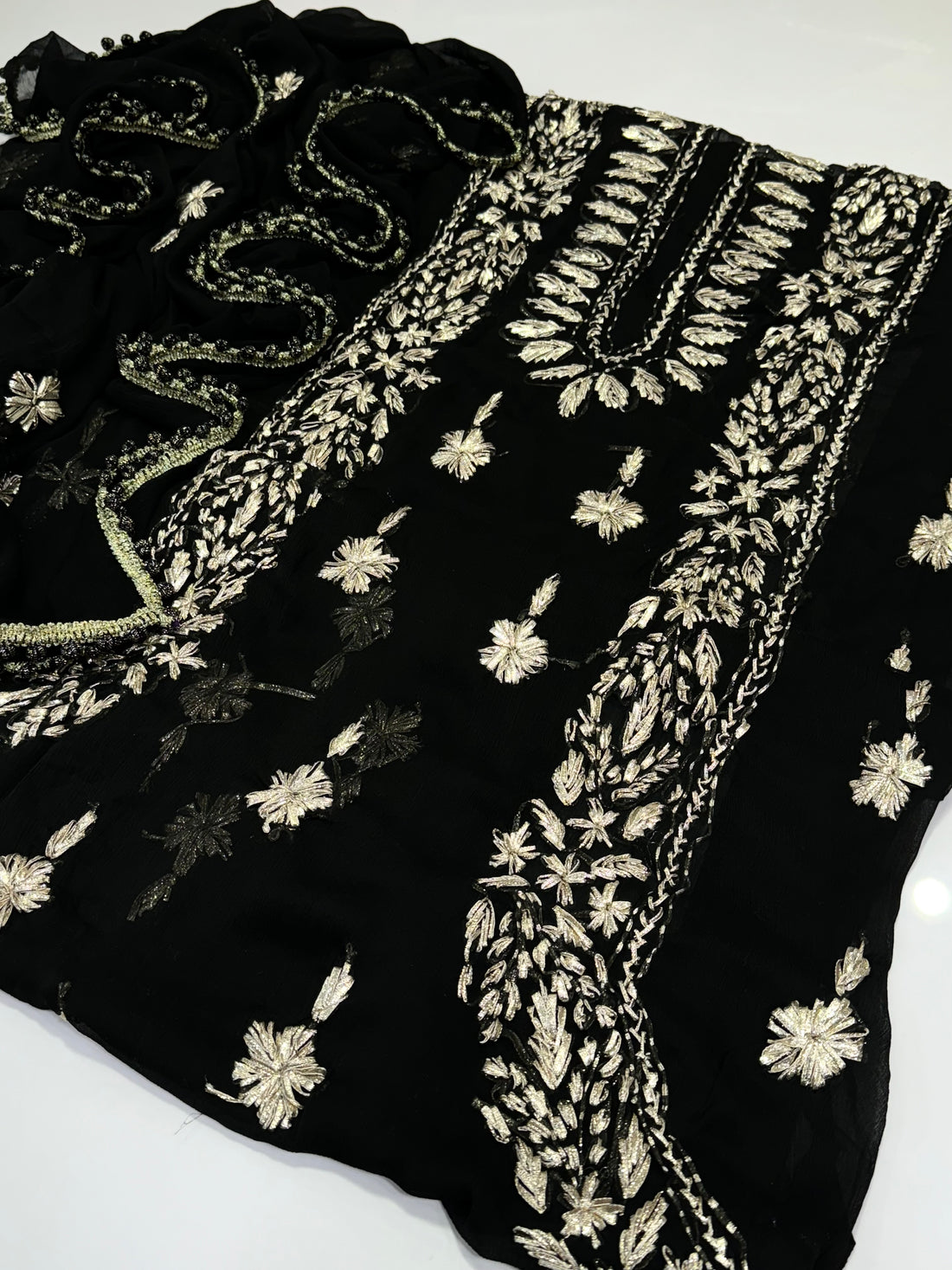 Mukesh Collection Handmade Button mukesh work on soft Shifoon full shirt jall with 2 sided...