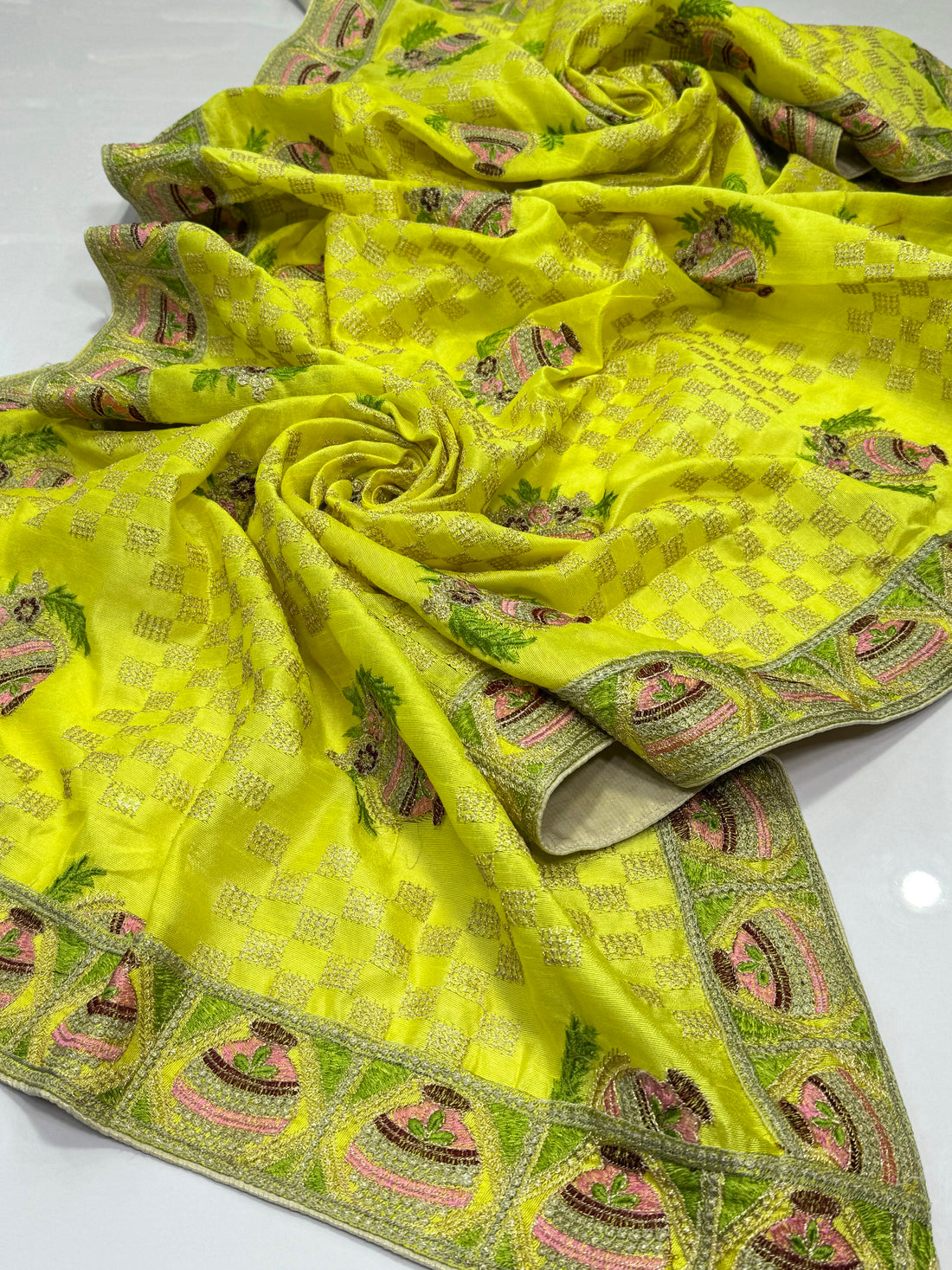 Indian Rao Silk Fully Fancy Embroidered Dupatta Excellent Quality Stuff2 Colors Available 35 Inches Width 91...