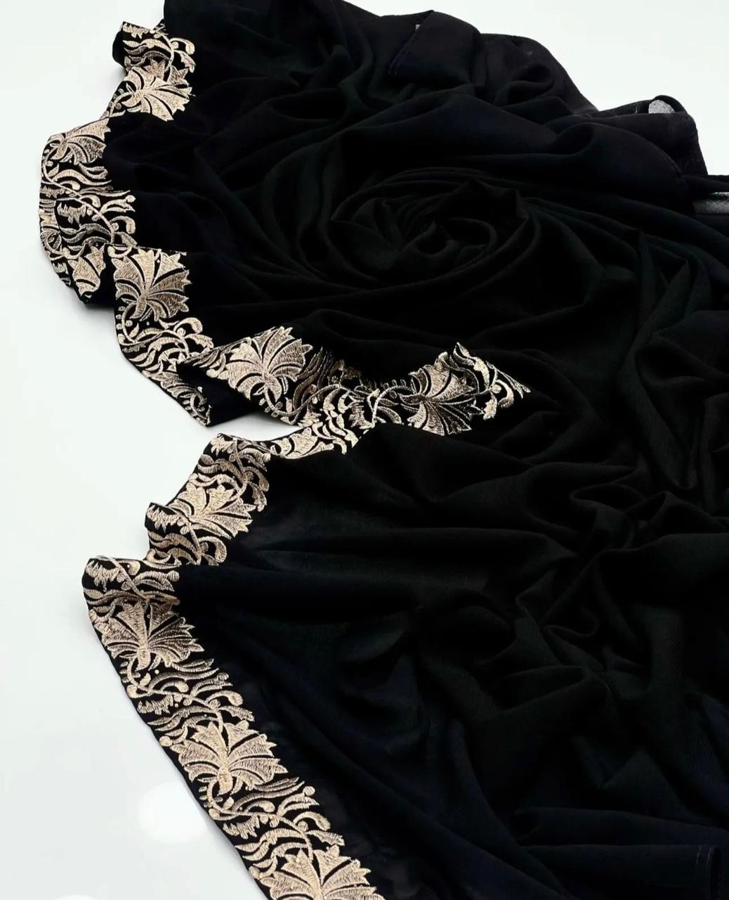 Korean Georgette Stuff Elegant And Beautiful Machine Embroidery Work 1 Sided Border Chadar