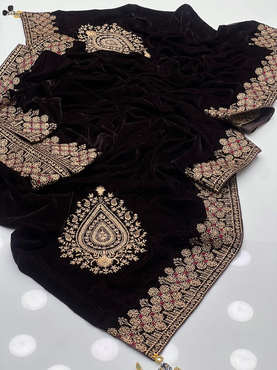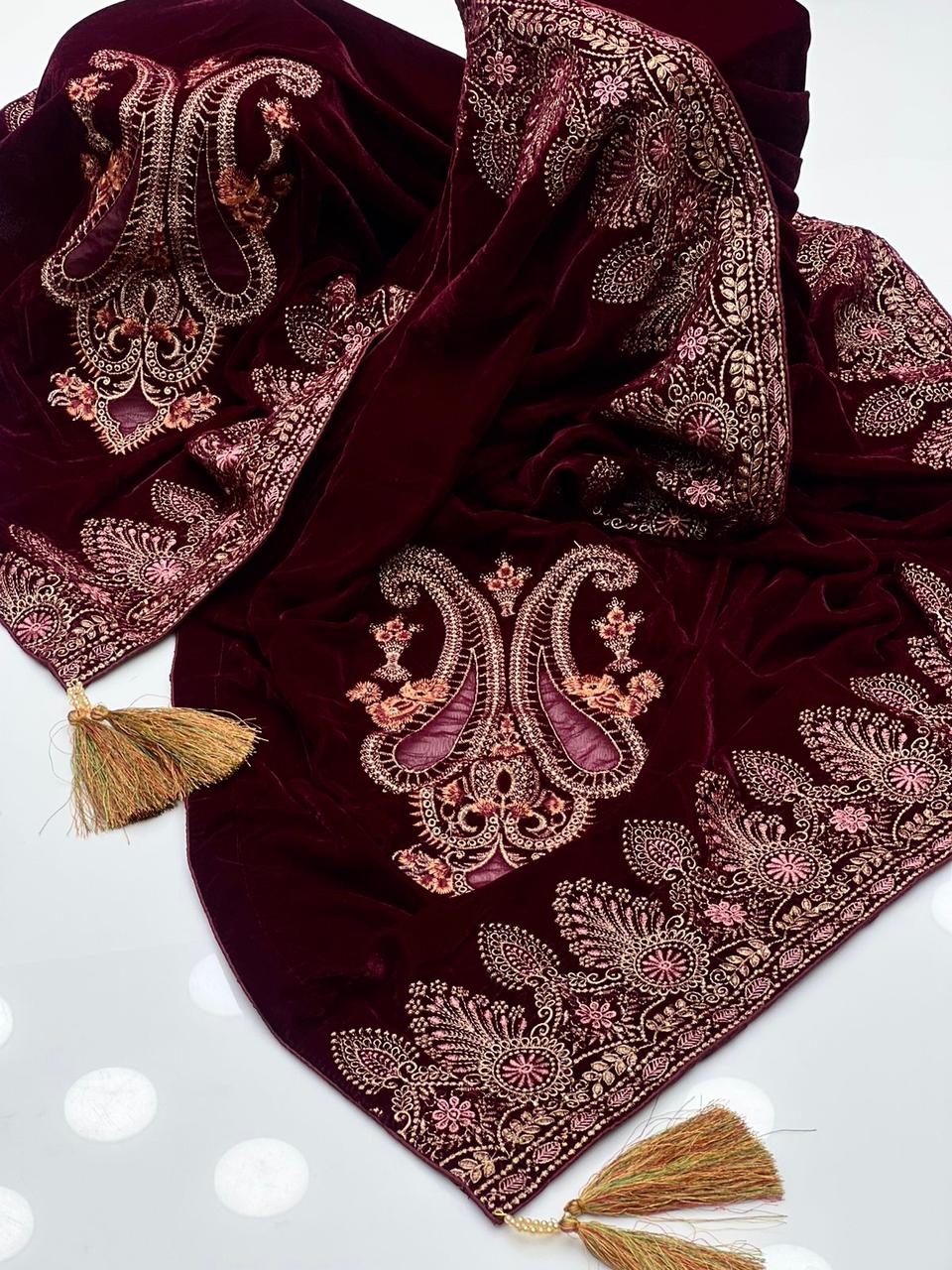 9000 Micro Velvet Machine Zarri Work Embroidery Shawl