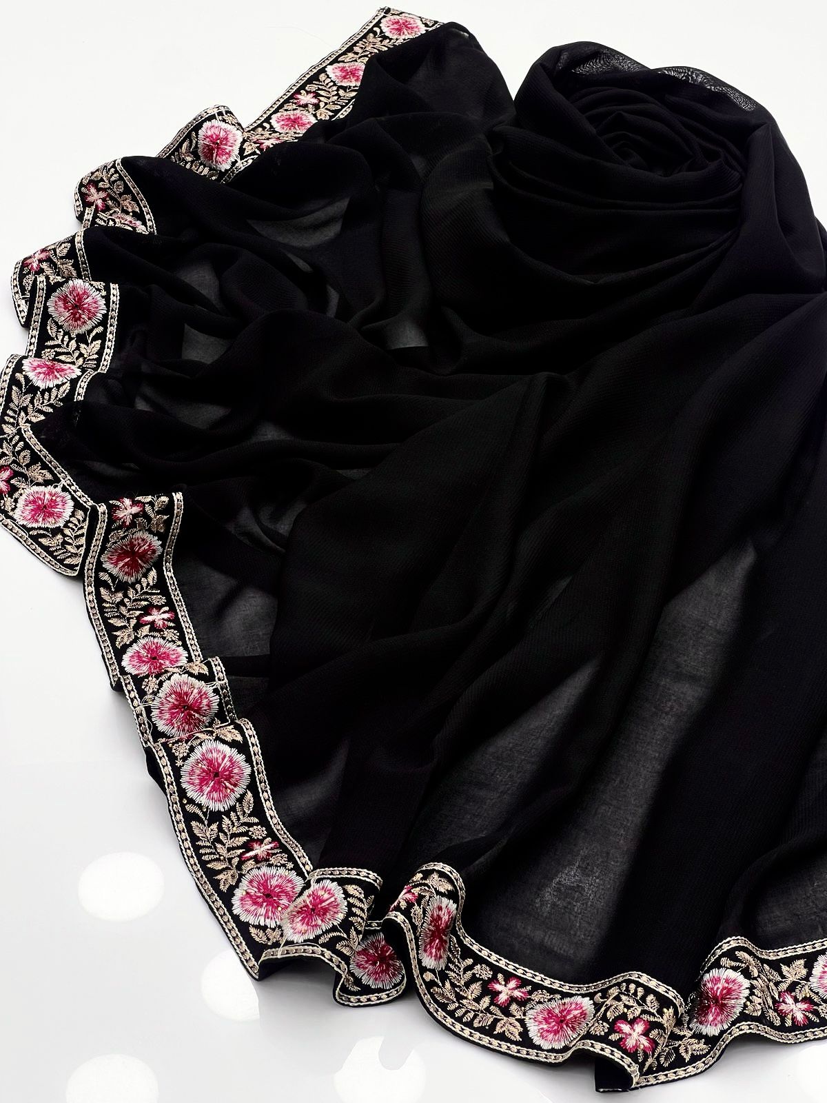 Elegant And Beautiful Machine Embroidery Work 1 Sided Border Chadar