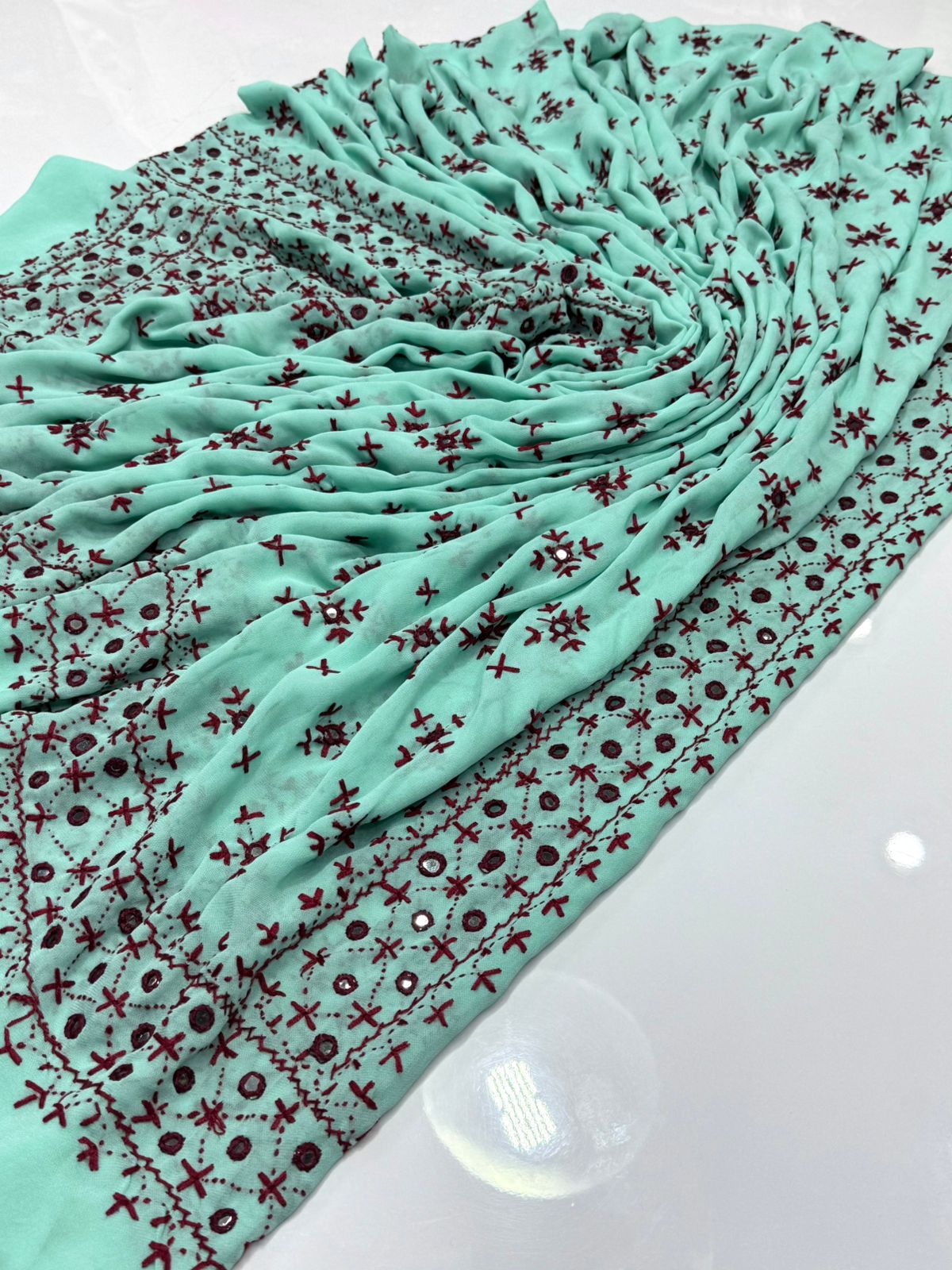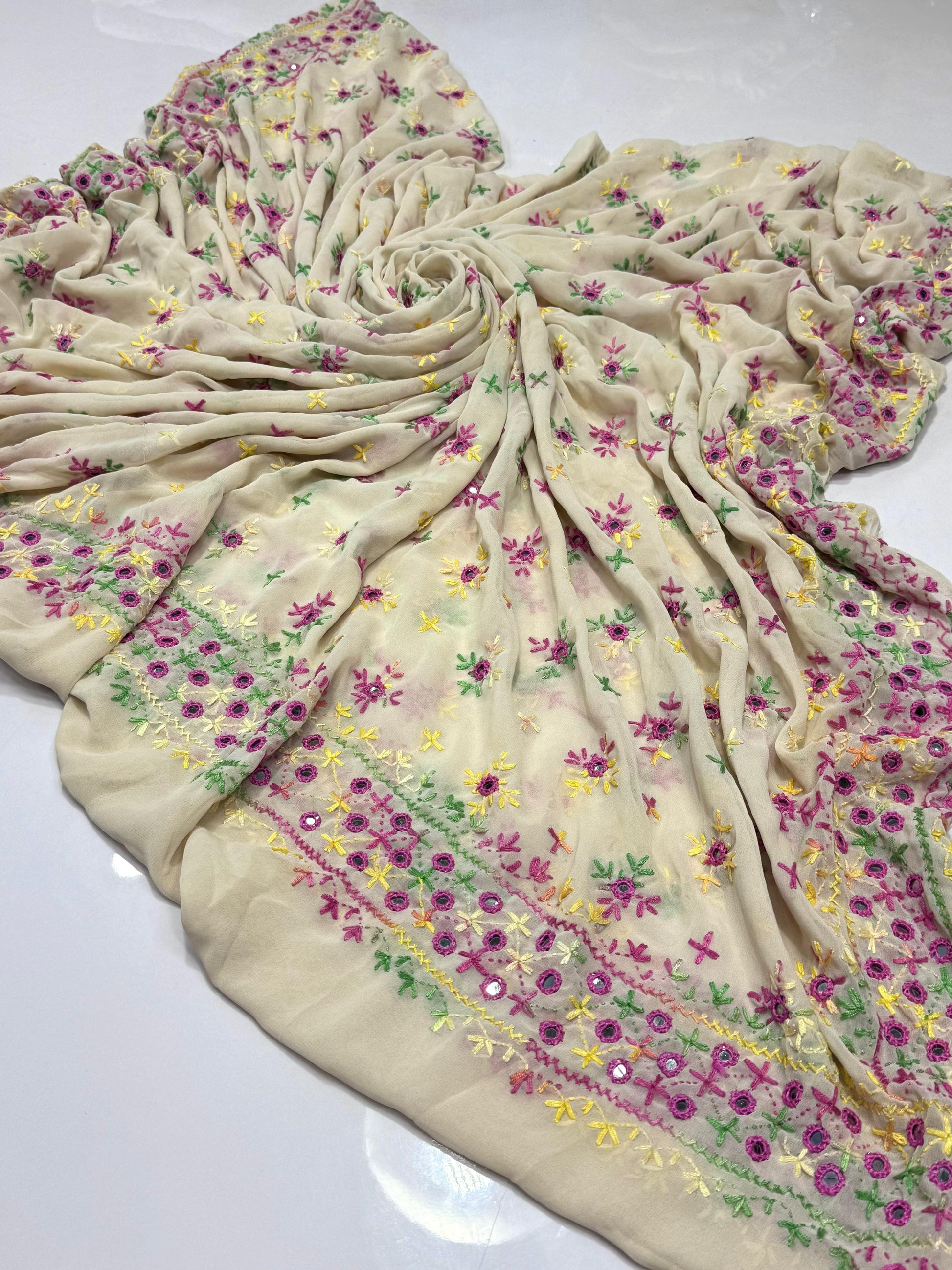 Elegant And Beautiful Sindhi Embroidered Chadar With Mirror Work