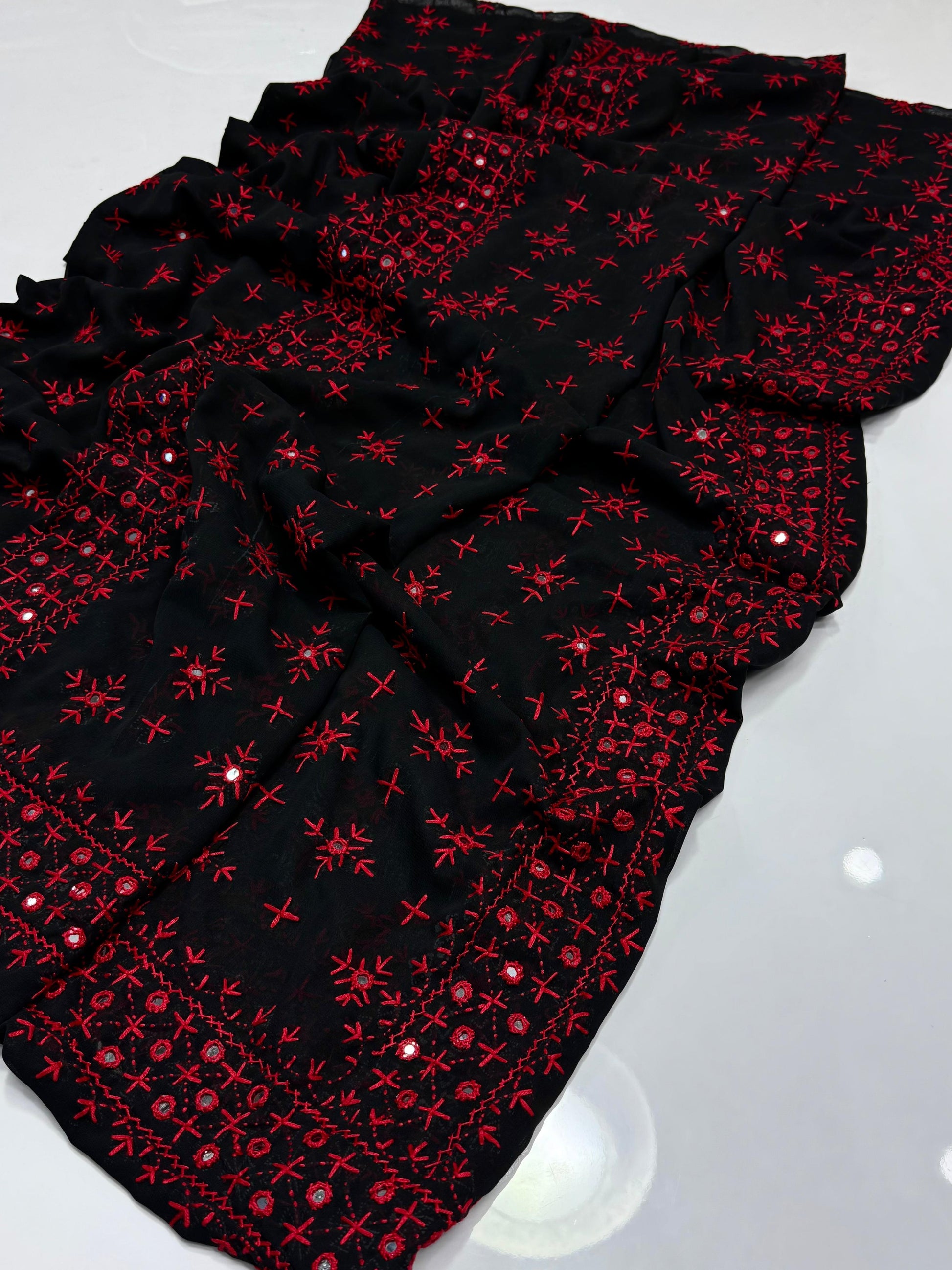 Elegant And Beautiful Sindhi Embroidered Chadar With Mirror Work