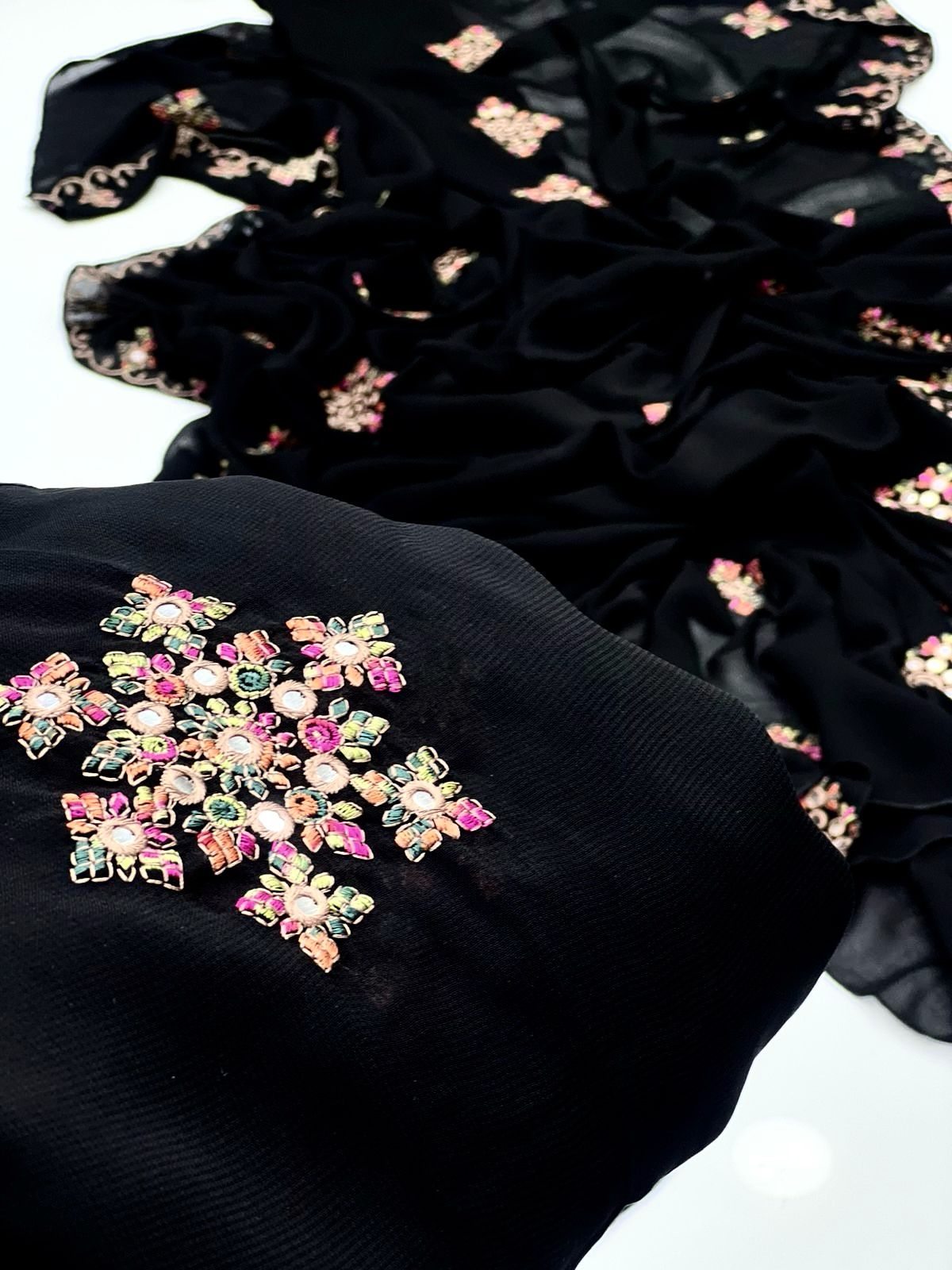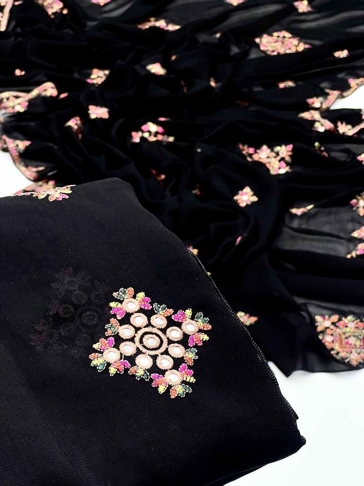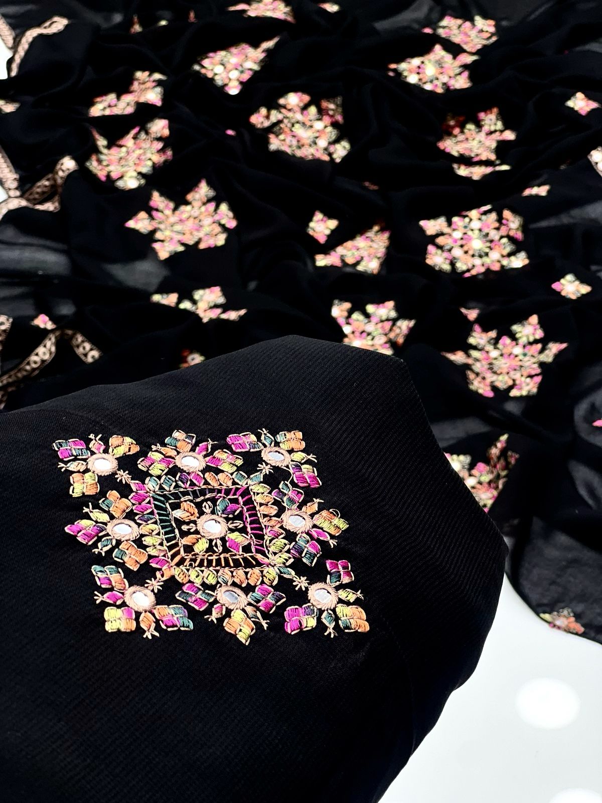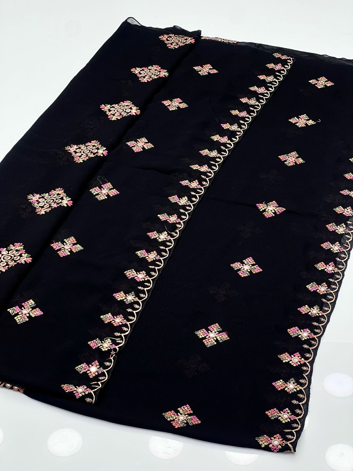 Korean Georgette Fabric Elegant And Beautiful Machine Balochi Embroidery Chadar