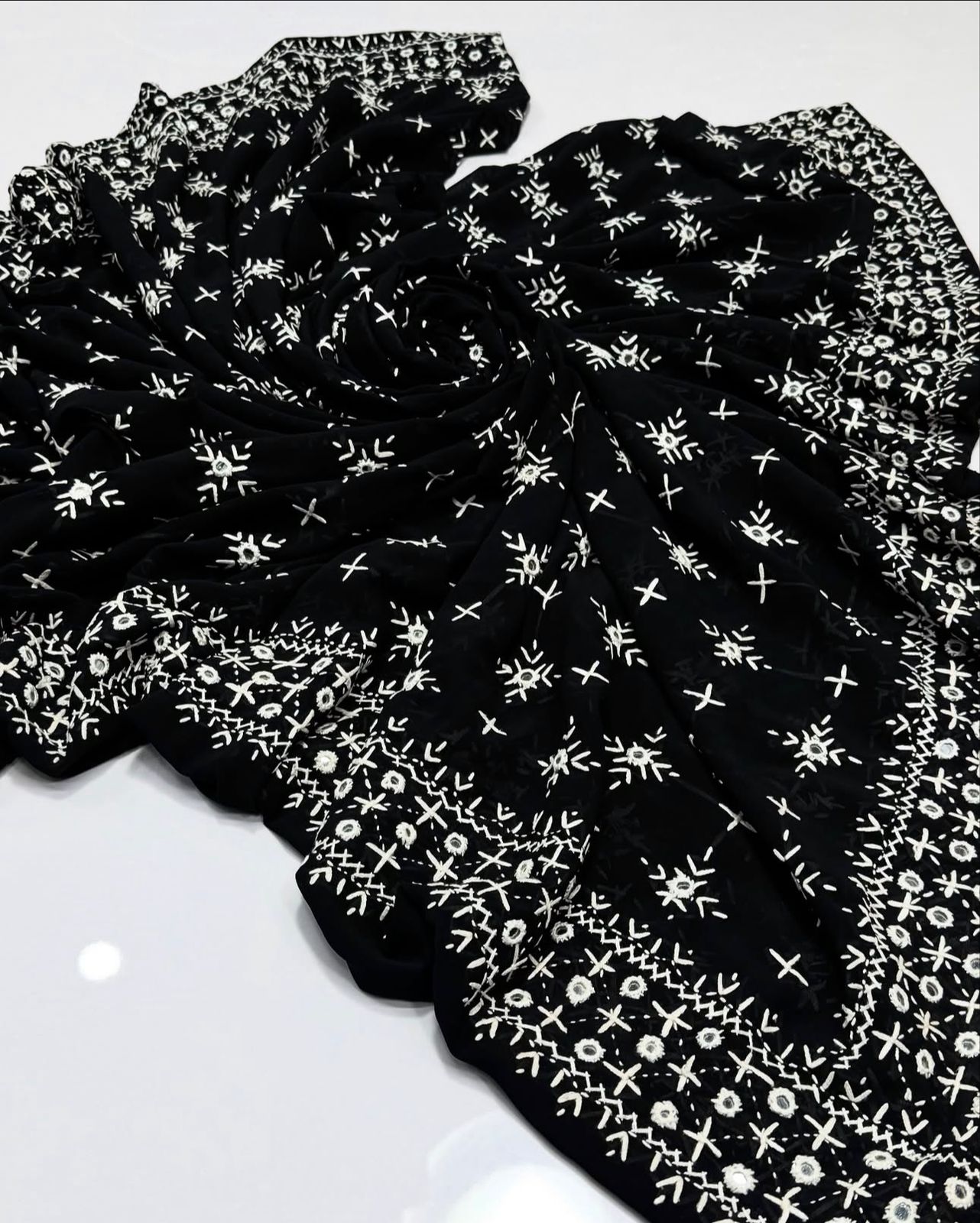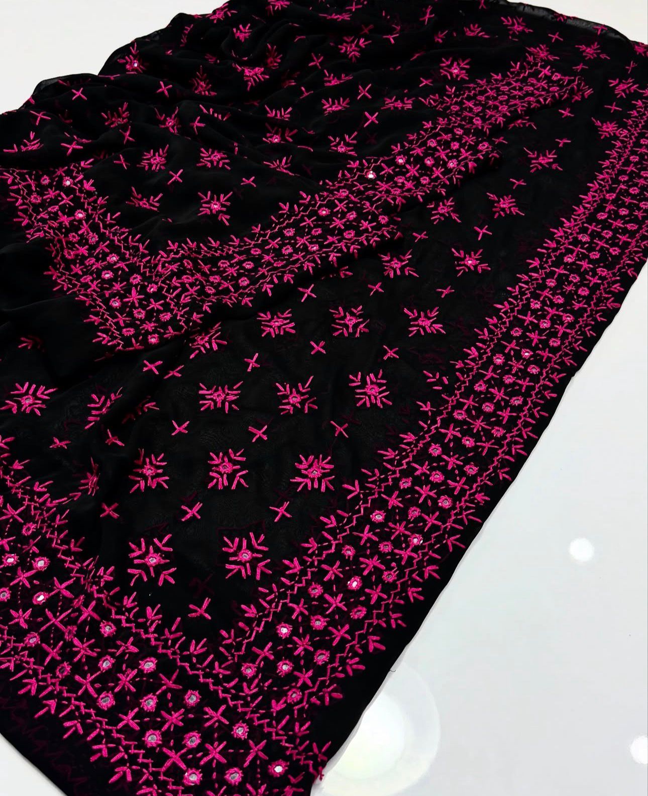 Korean Georgette Fabric Sindhi Embroidered Chadar With Mirror Work