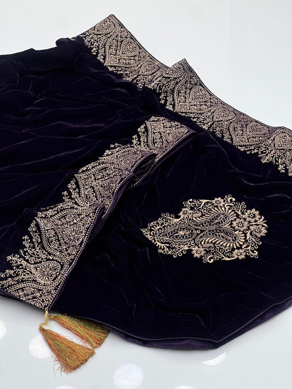 Micro Velvet Shawl Machine Zarri Work Embroidery