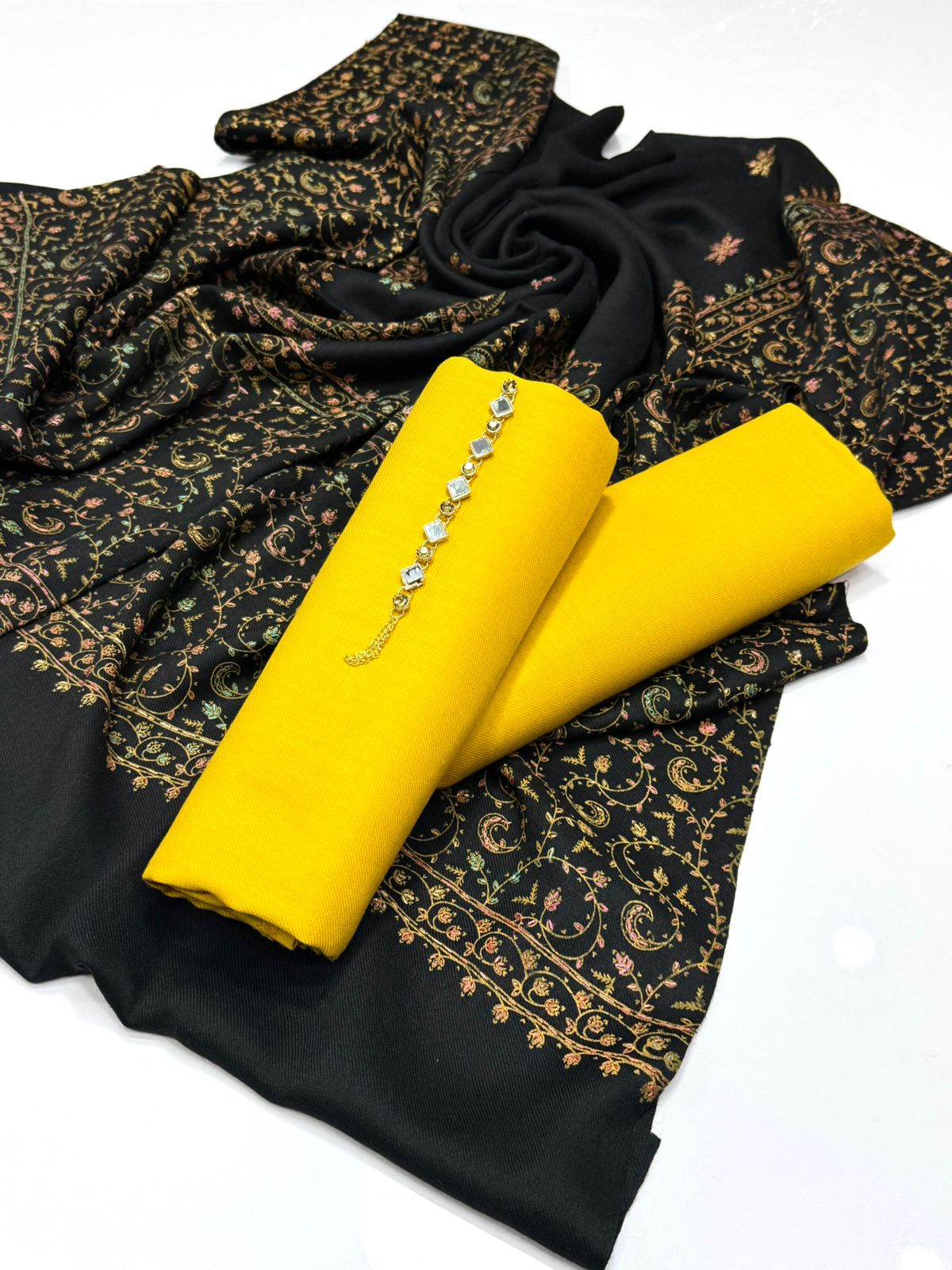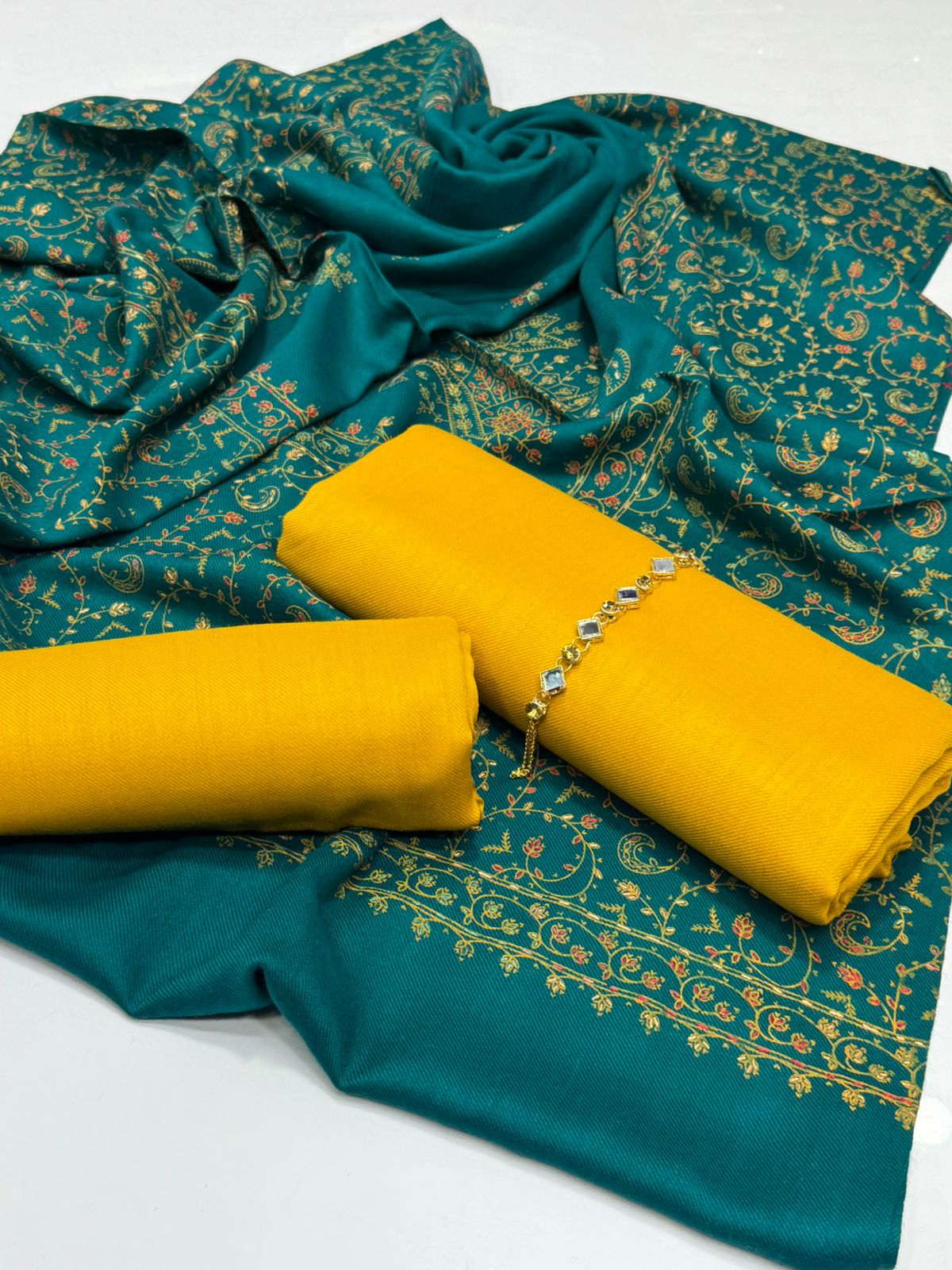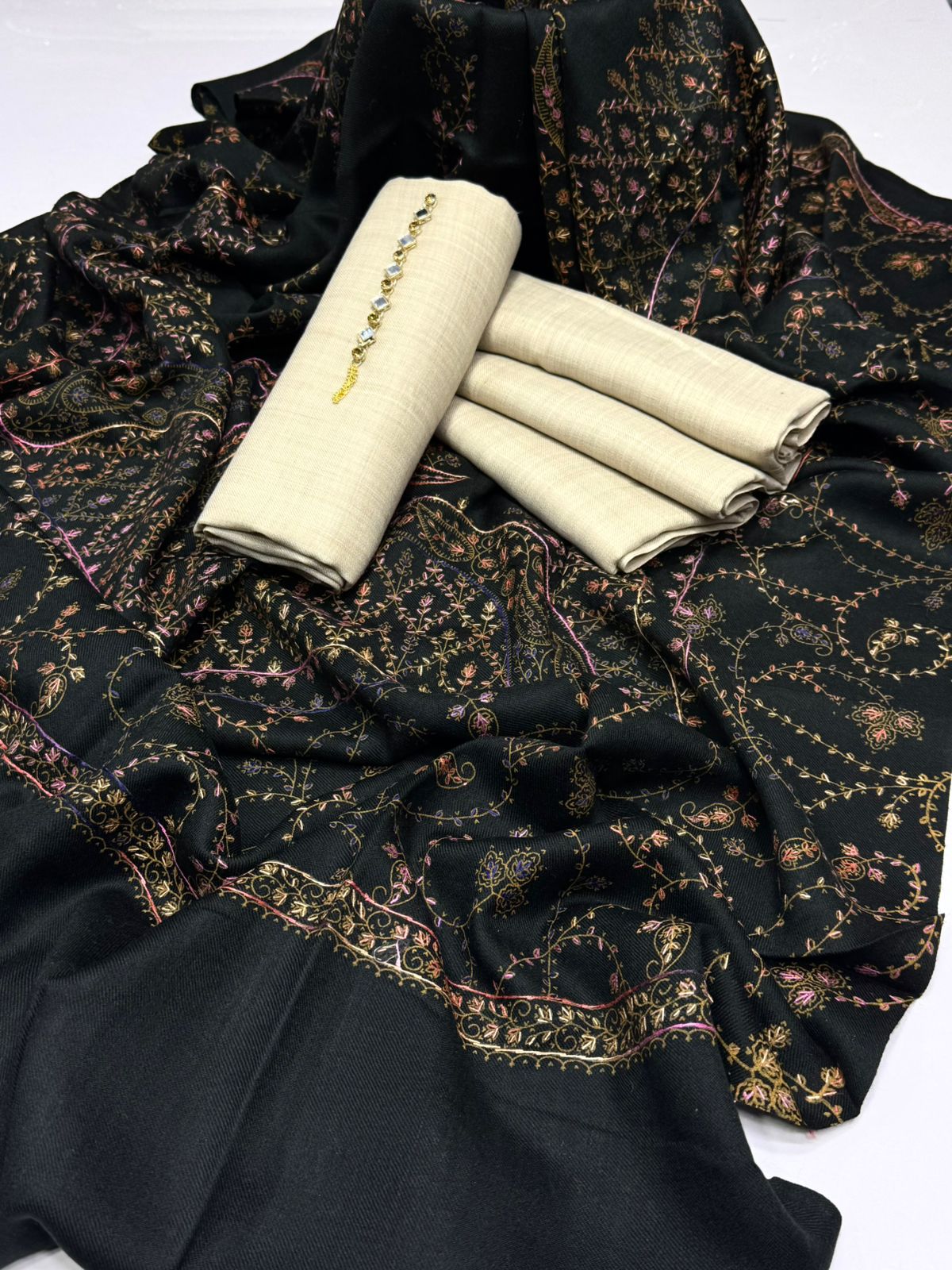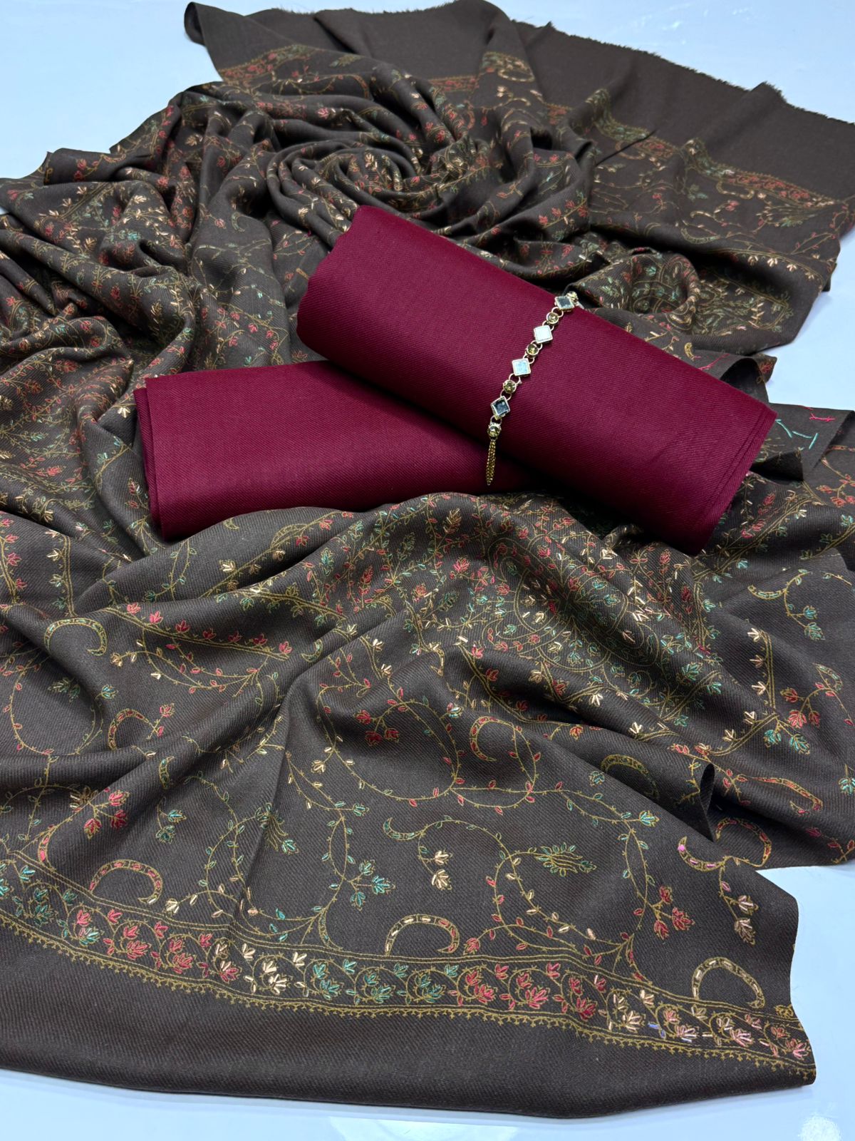 Simple Shirt And Trouser With Hand Made Kashmiri Pashmina Shawl Excellent Quality Soft 72 Grade Pashmina 3 Pieces Full Suit