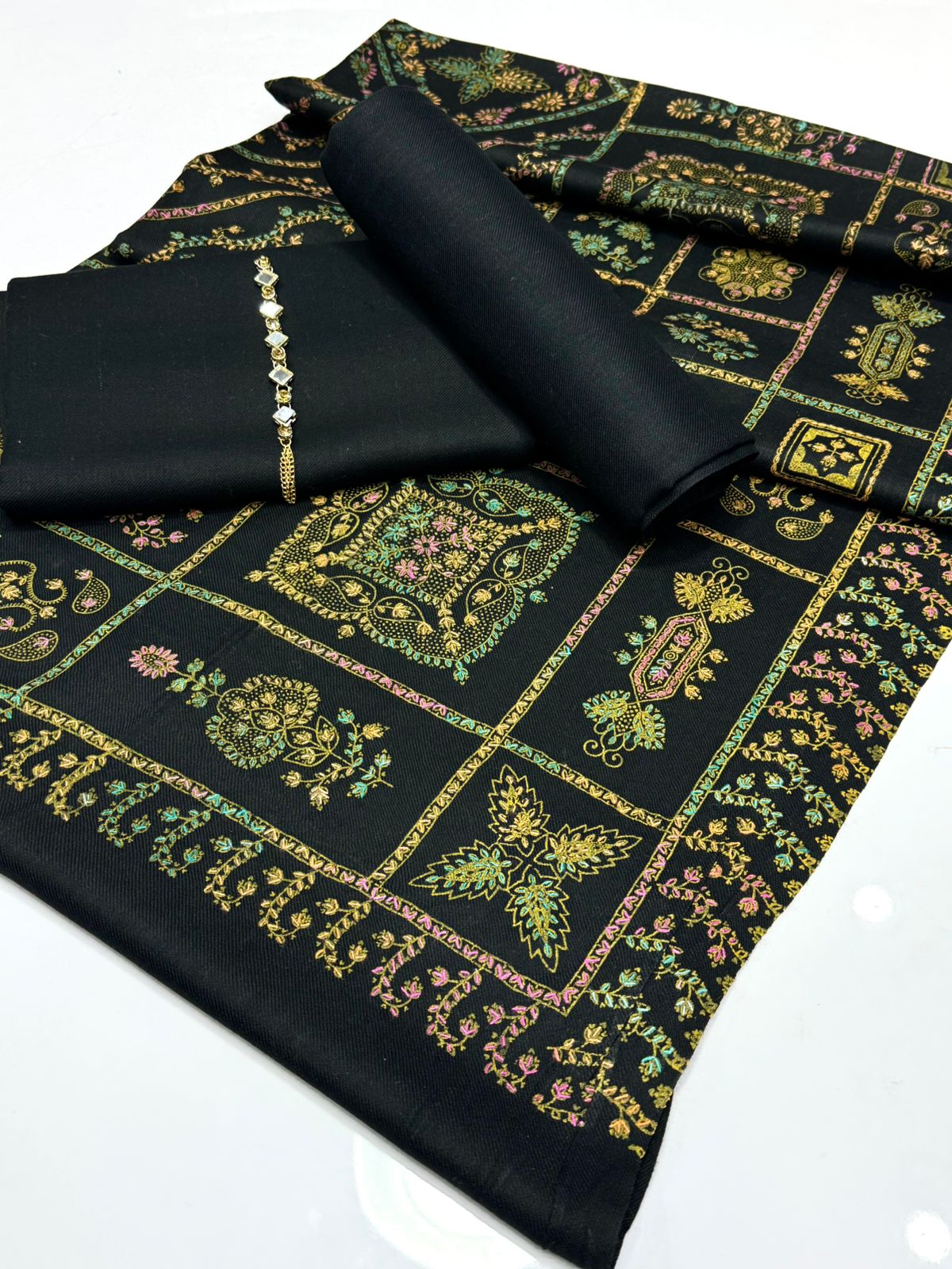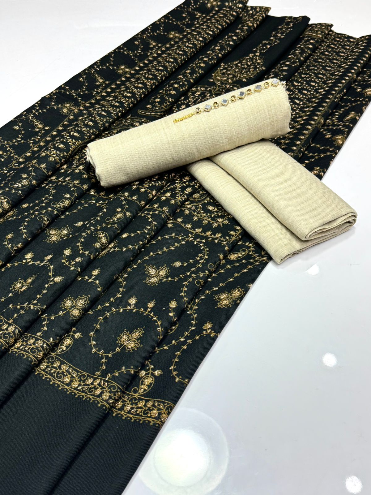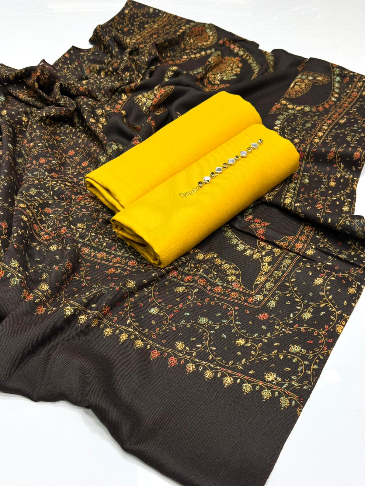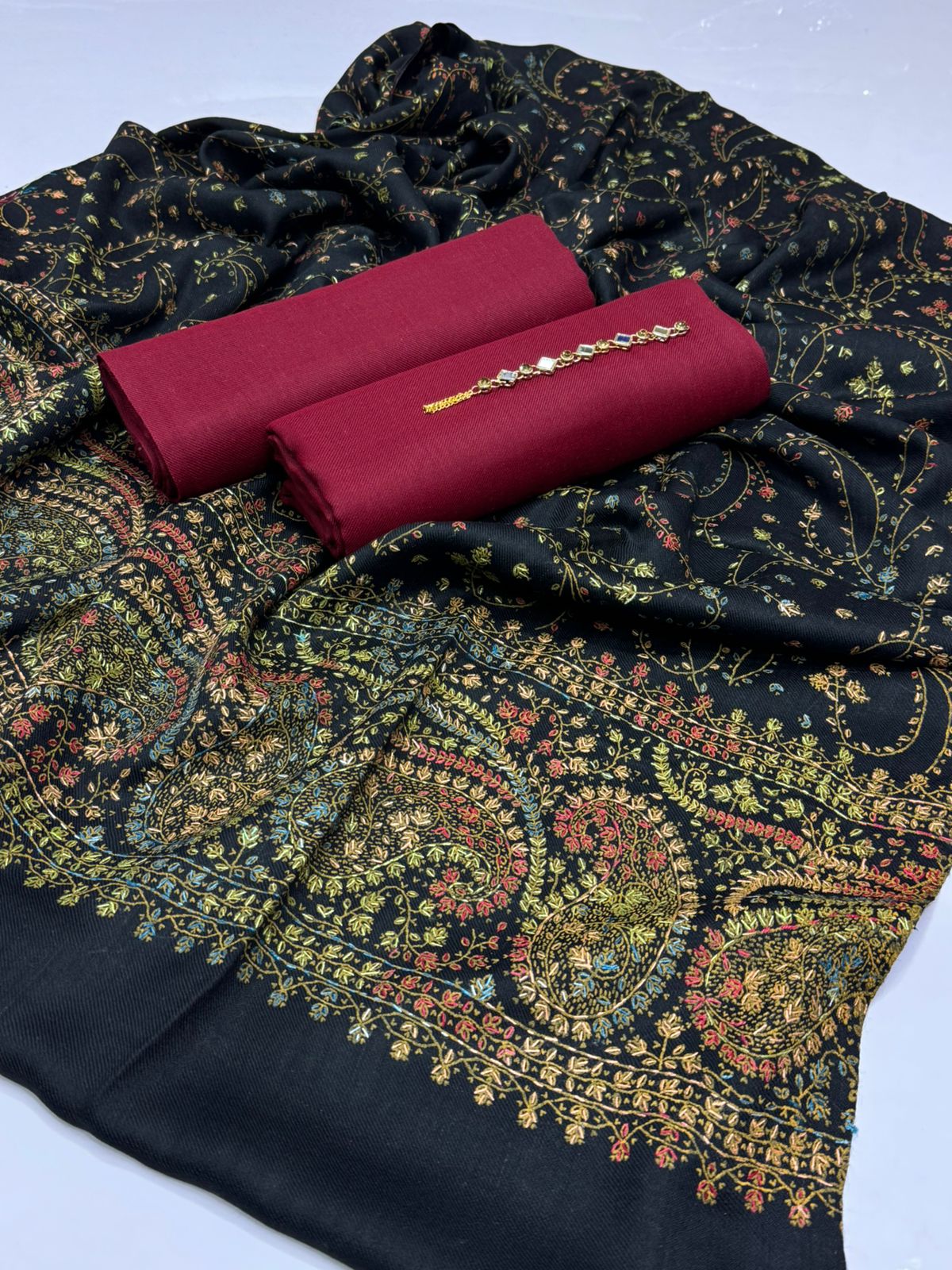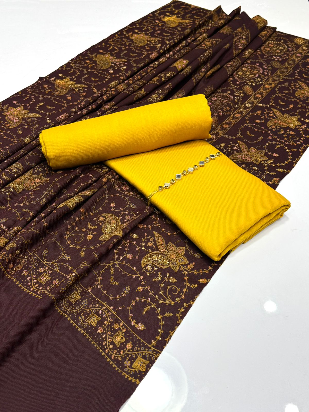 Simple Shirt And Trouser With Hand Made Kashmiri Pashmina Shawl Excellent Quality Soft 72 Grade Pashmina 3 Pieces Full Suit