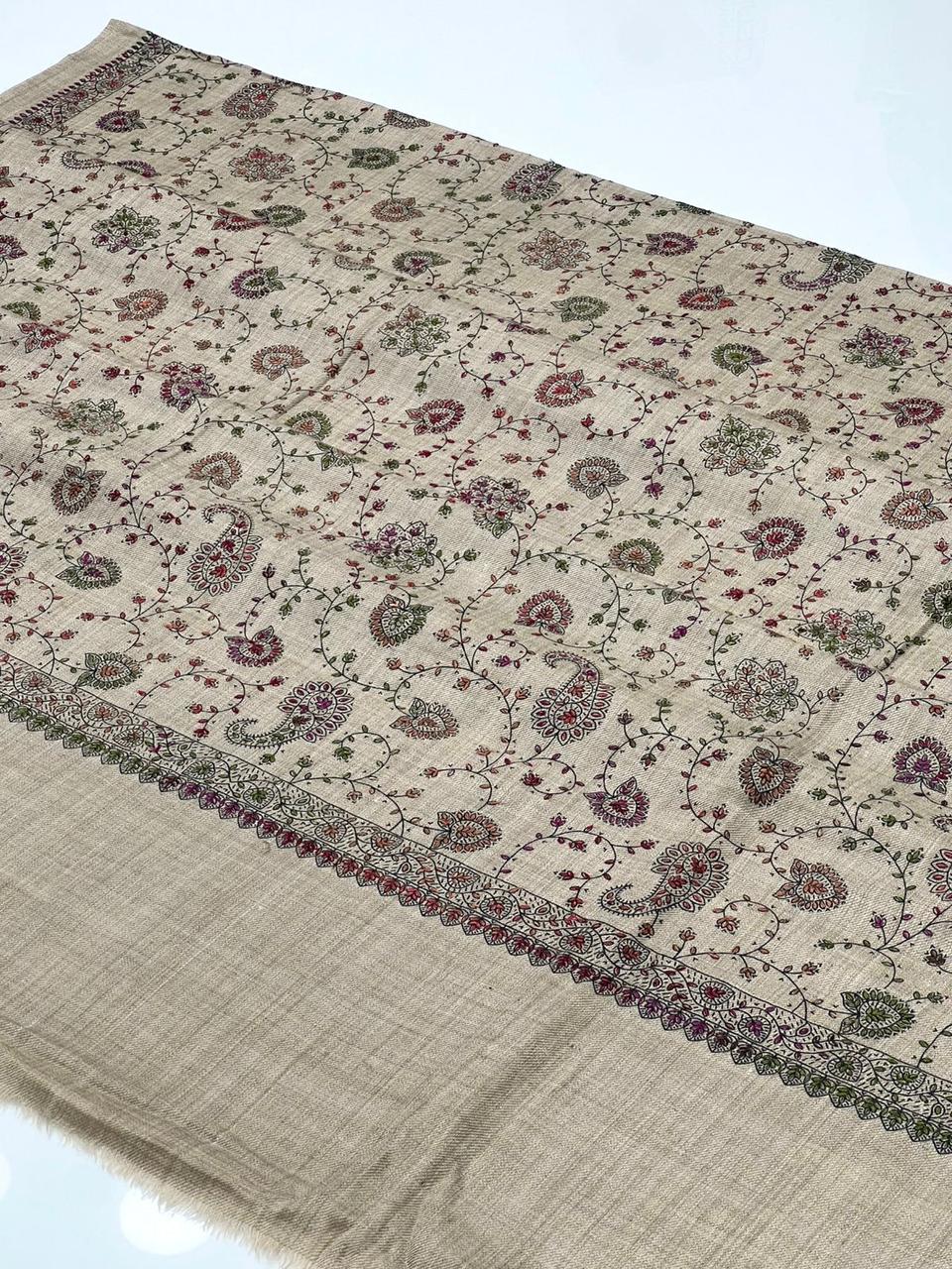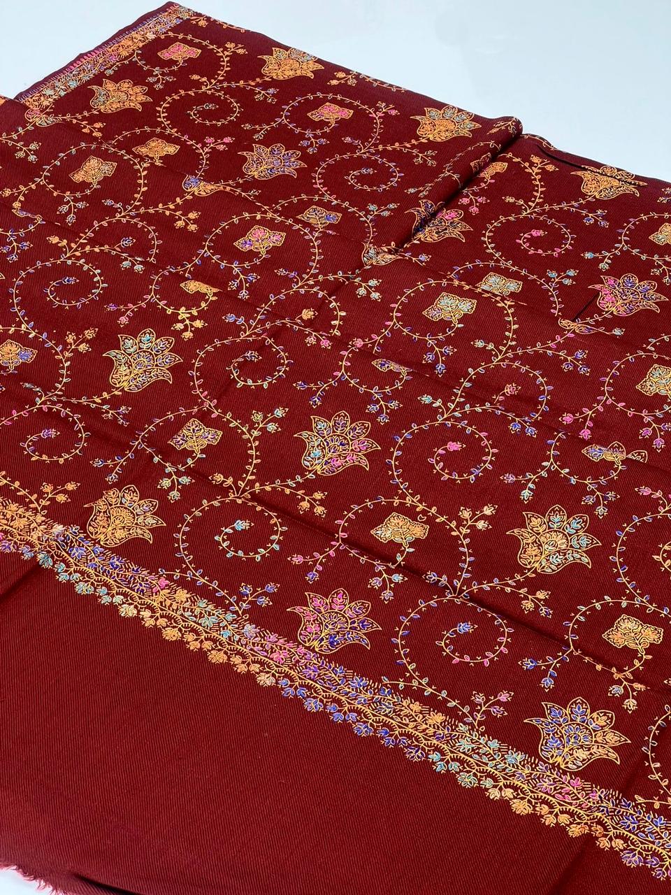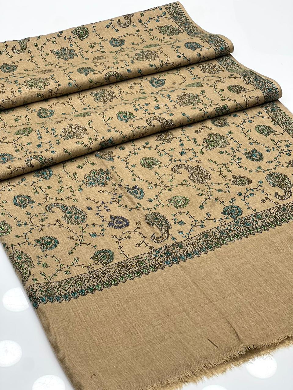 Pashmina Hand Made Kashmiri Embroidery With Block Print Shawl