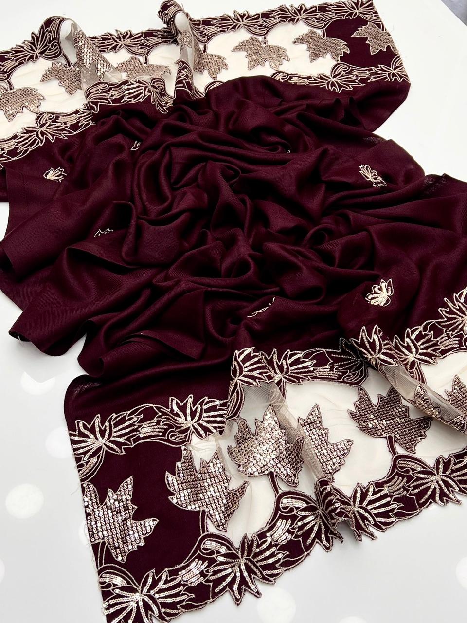 Elegant And Beautiful Machine Cut Work With Sequence Shawl
