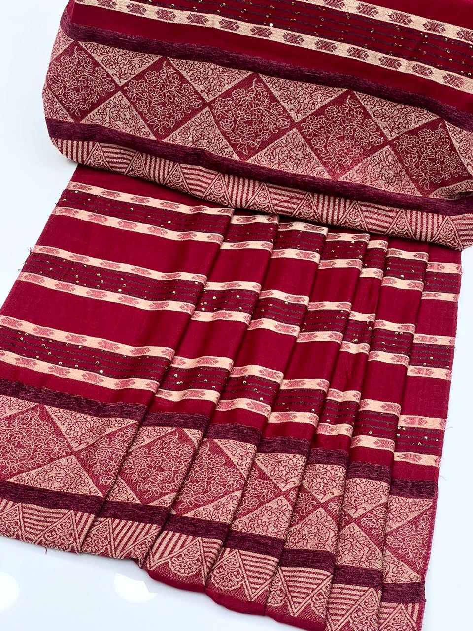 Elegant And Beautiful Bnarsi Shawl With Velvet Or Sequence