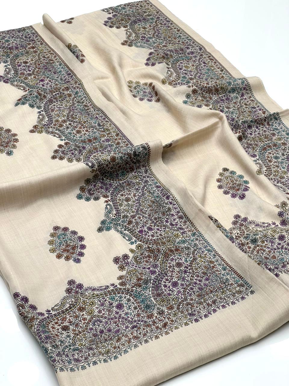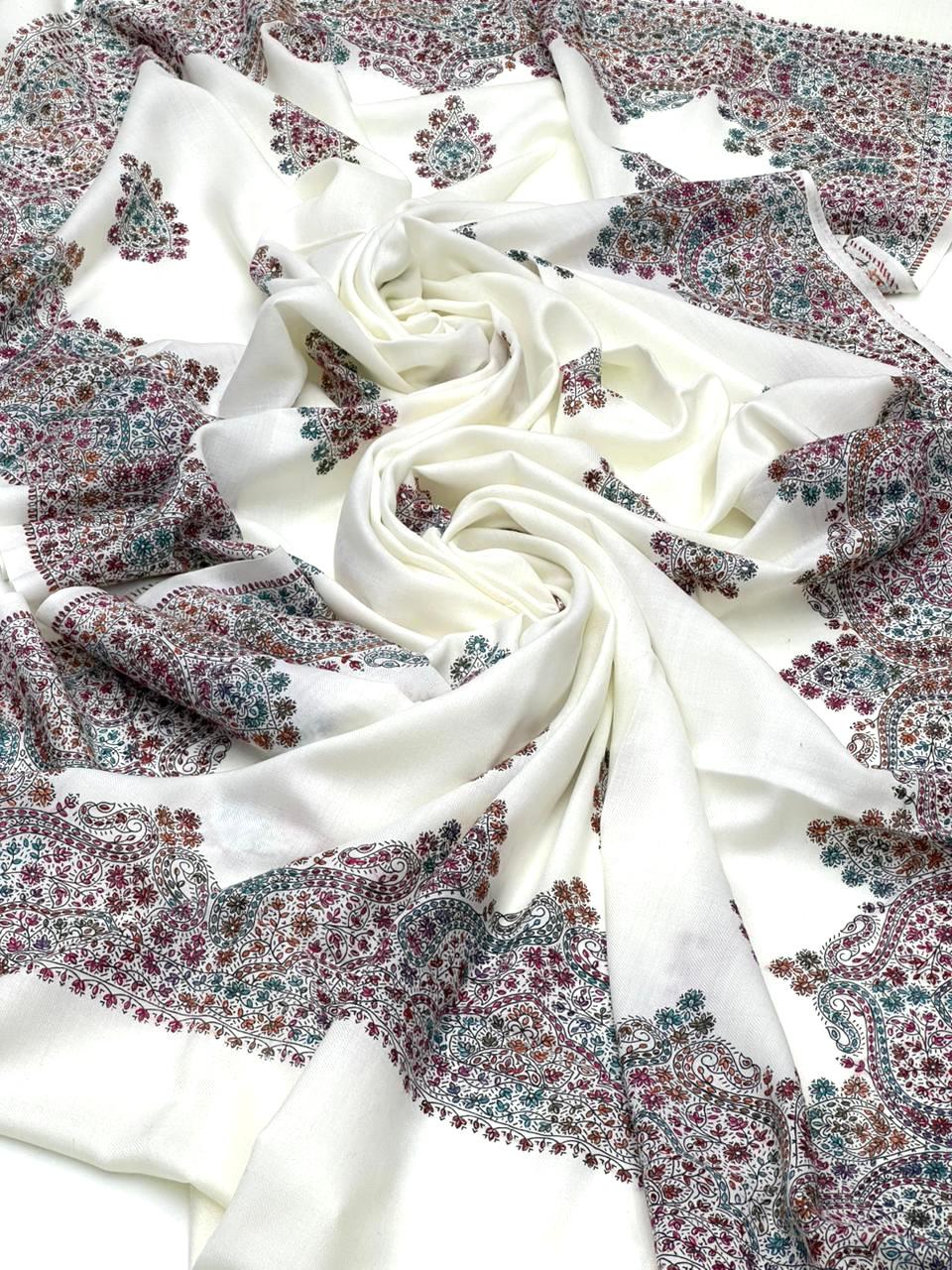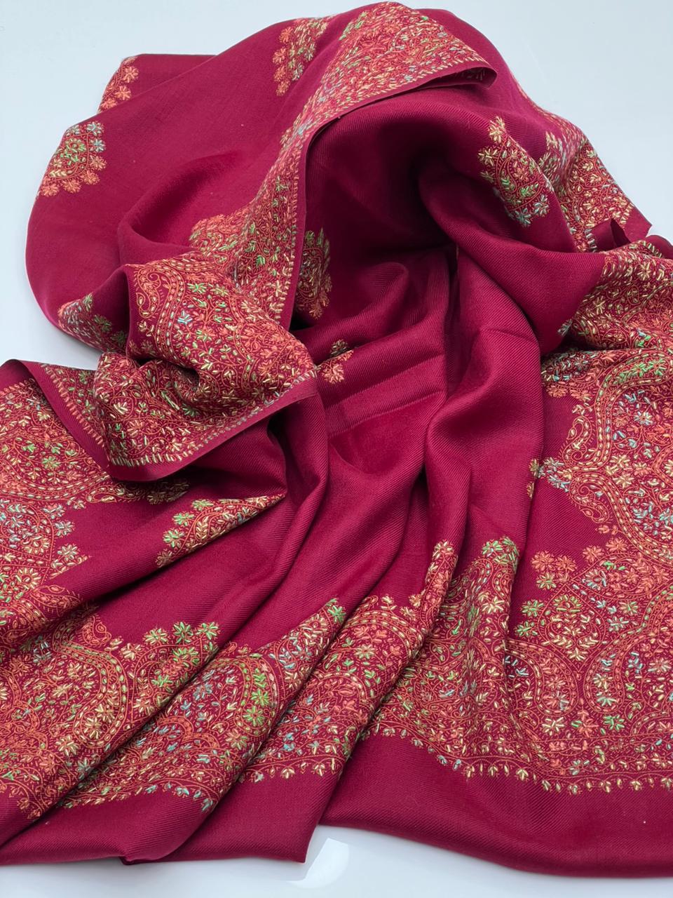 Pashmina Shawl Hand Made Kashmiri Embroidery With Block Print