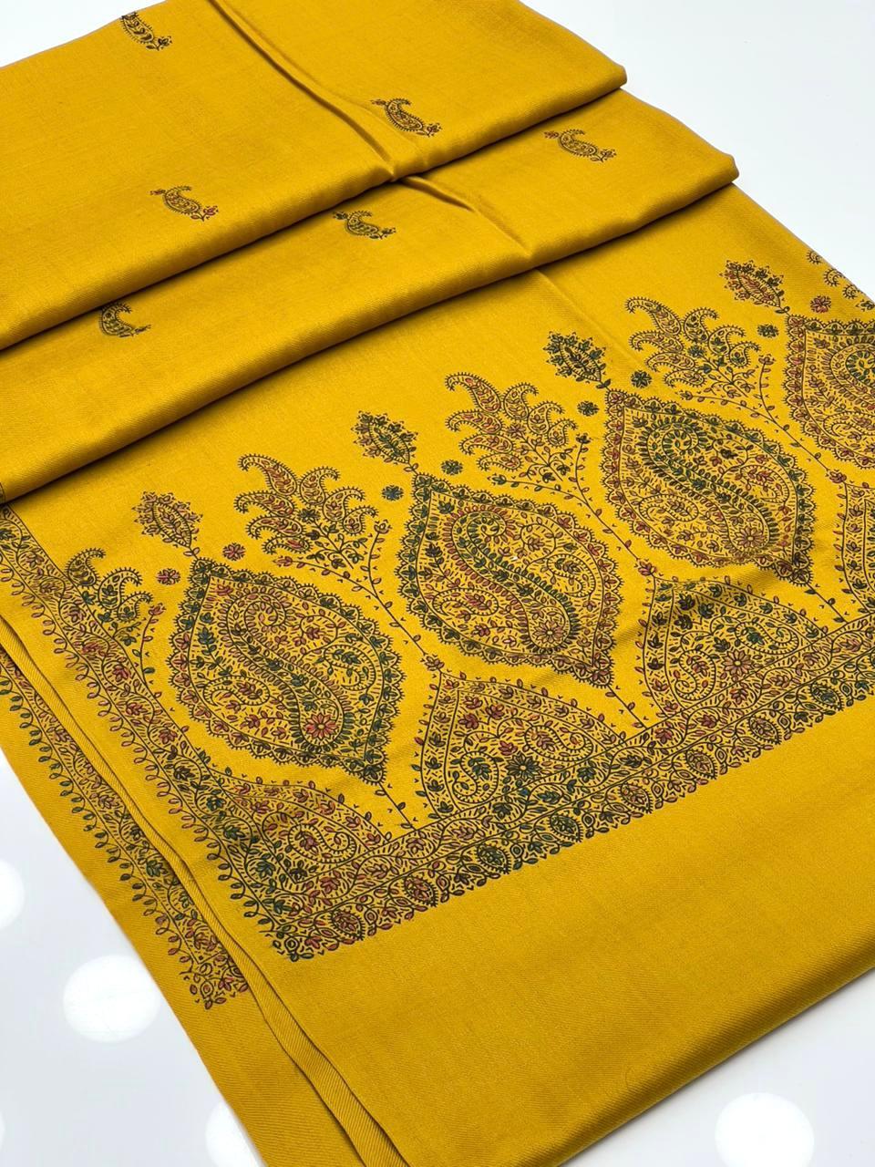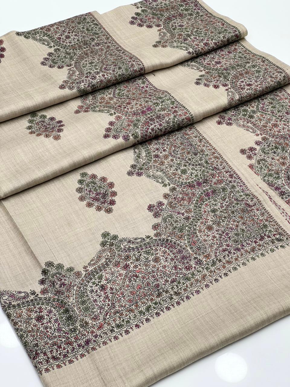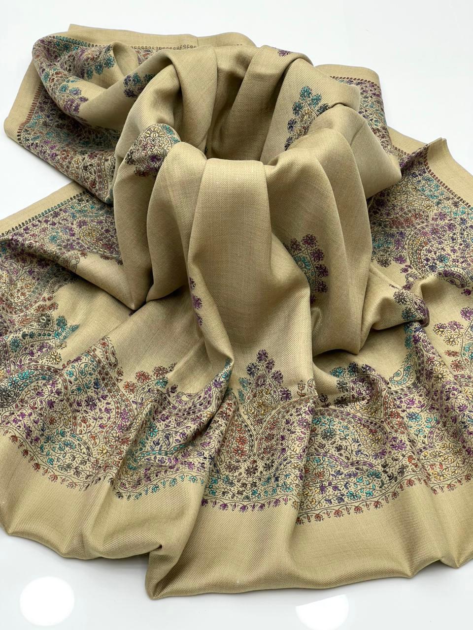 Pashmina Shawl Hand Made Kashmiri Embroidery With Block Print