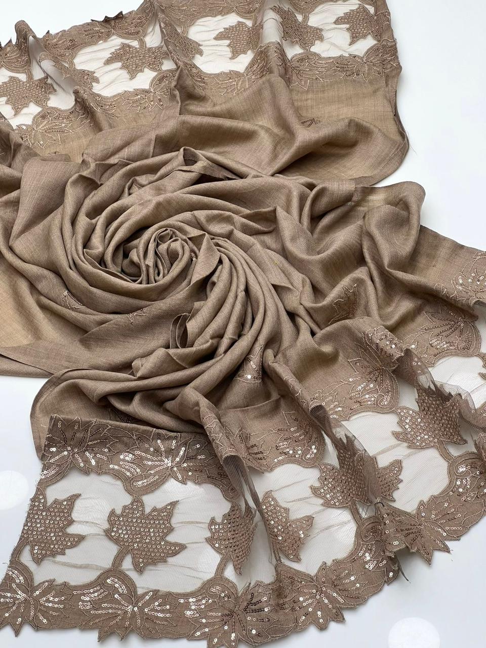 Pashmina Shawl Machine Cut Work With Sequence Shawl