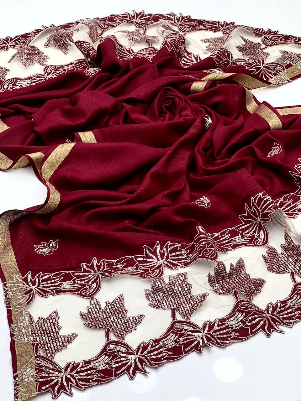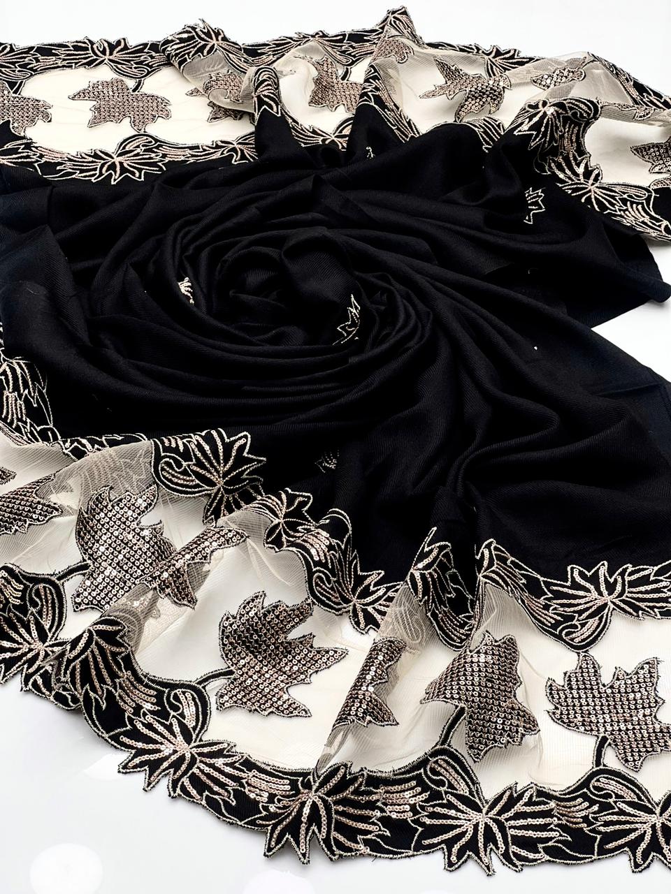 Pashmina Shawl Machine Cut Work With Sequence Shawl