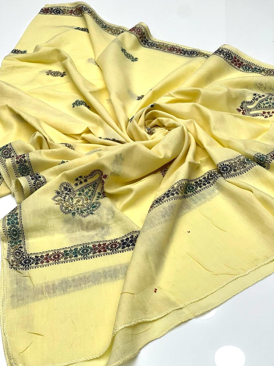 Pure Lawn Kashmiri Hand Made Embroidered With Block Print Chadar