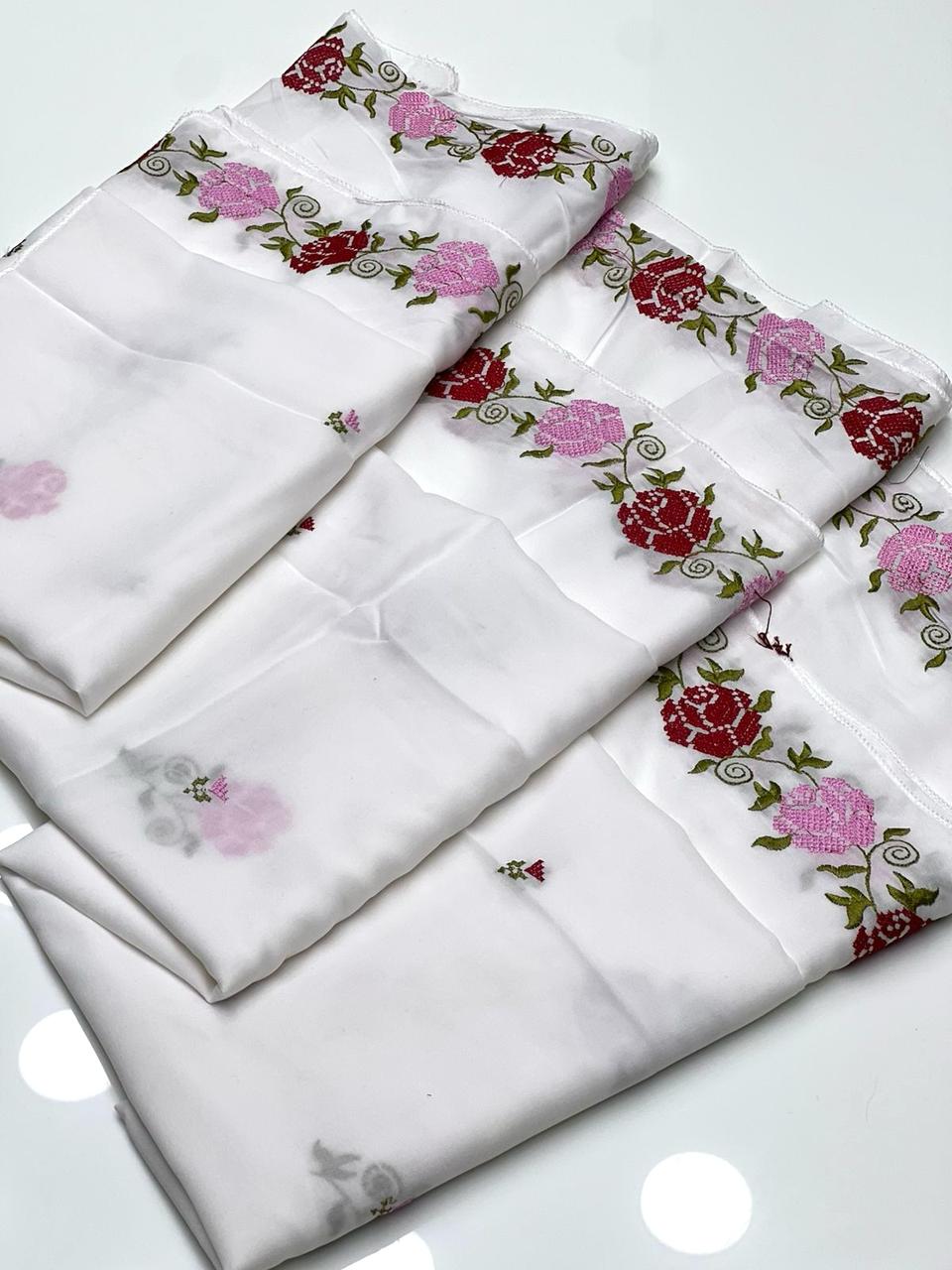 Swiss Lawn Fabric Machine Cross Stitch Embroidered Chadar
