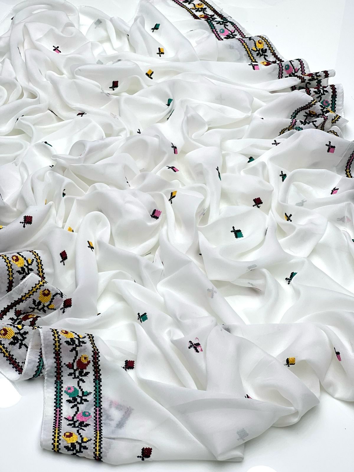 Swiss Lawn Fabric Machine Cross Stitch Embroidery Chadar