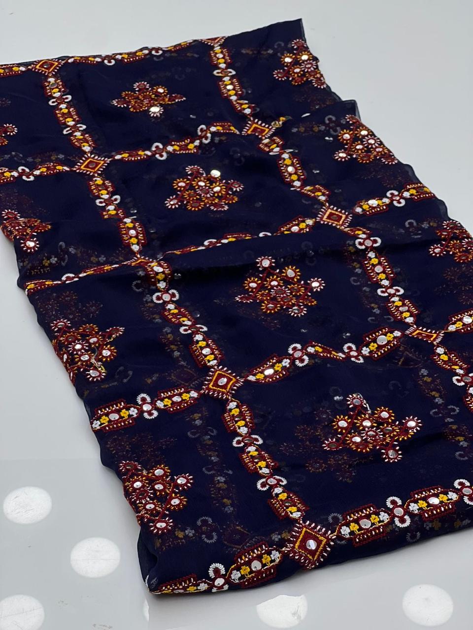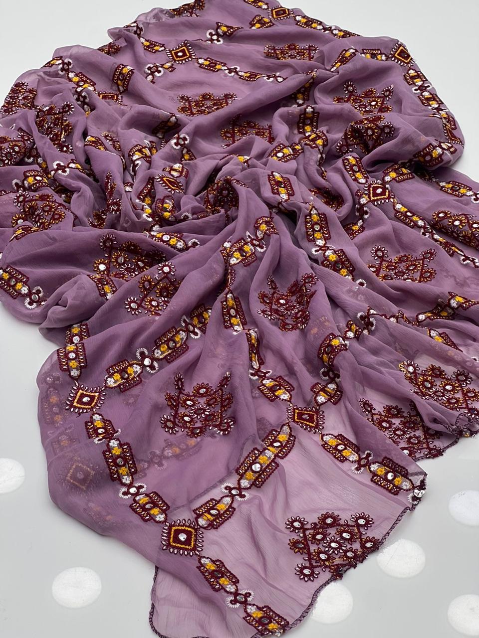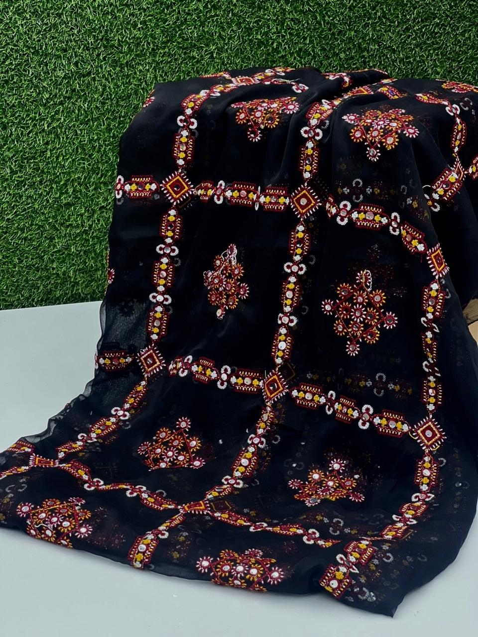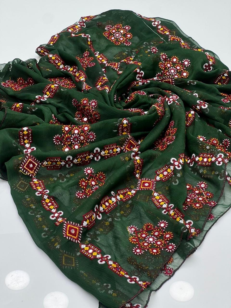 Crinkle Chiffon Stuff Machine Balochi With Sequence Full Size Chadar