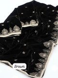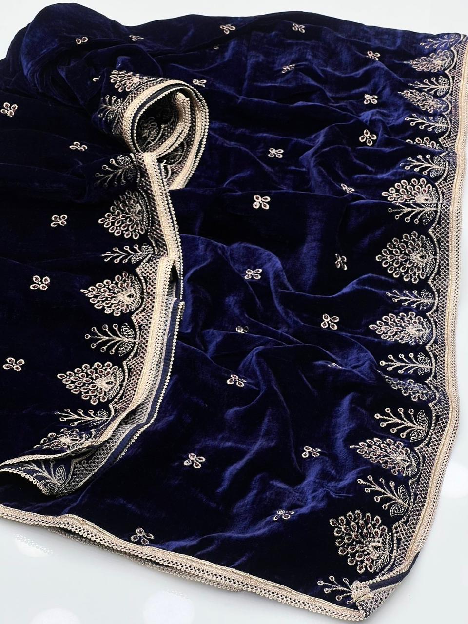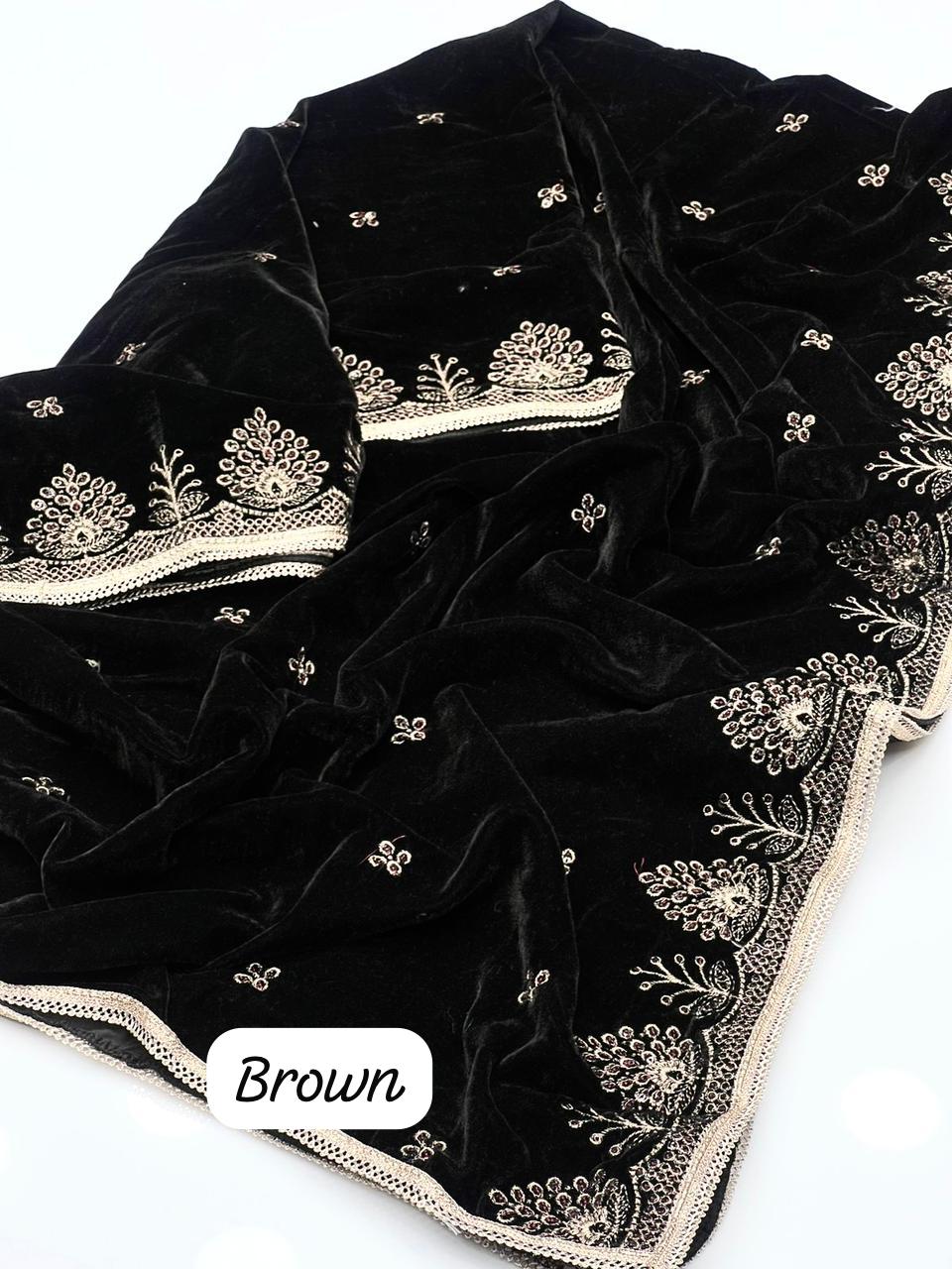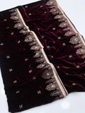 Velvet Shawl Machine Sequence Embroidered With Tilla Thread
