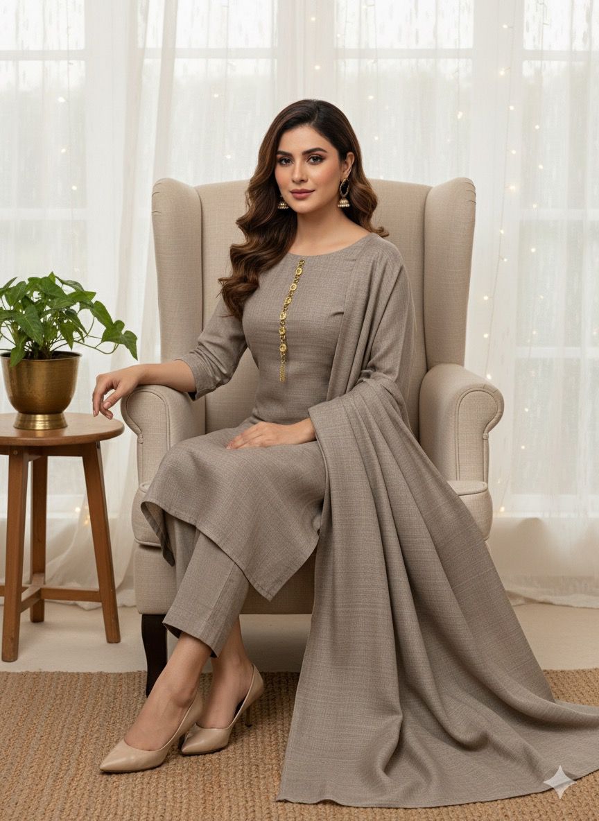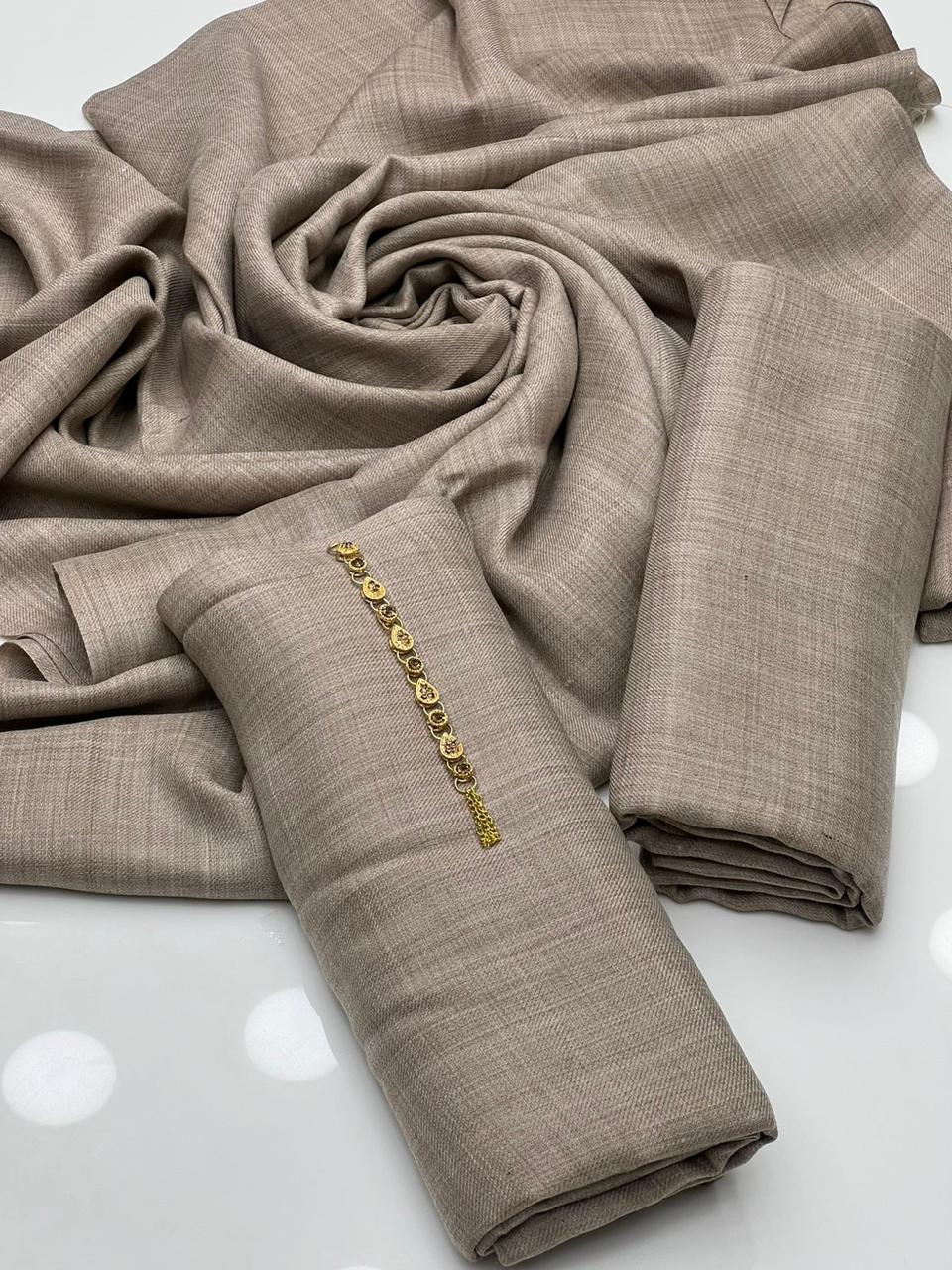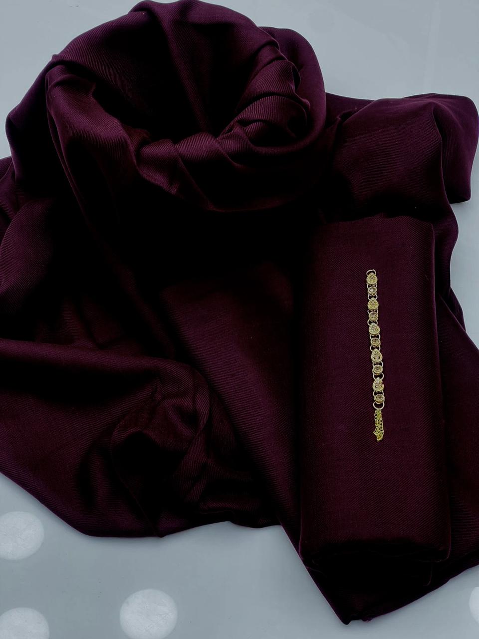 Simple Shirt And Trouser With Simple Pashmina Shawl Excellent Quality Soft 72 Grade Pashmina 3 Pieces Full Suit