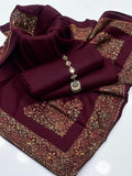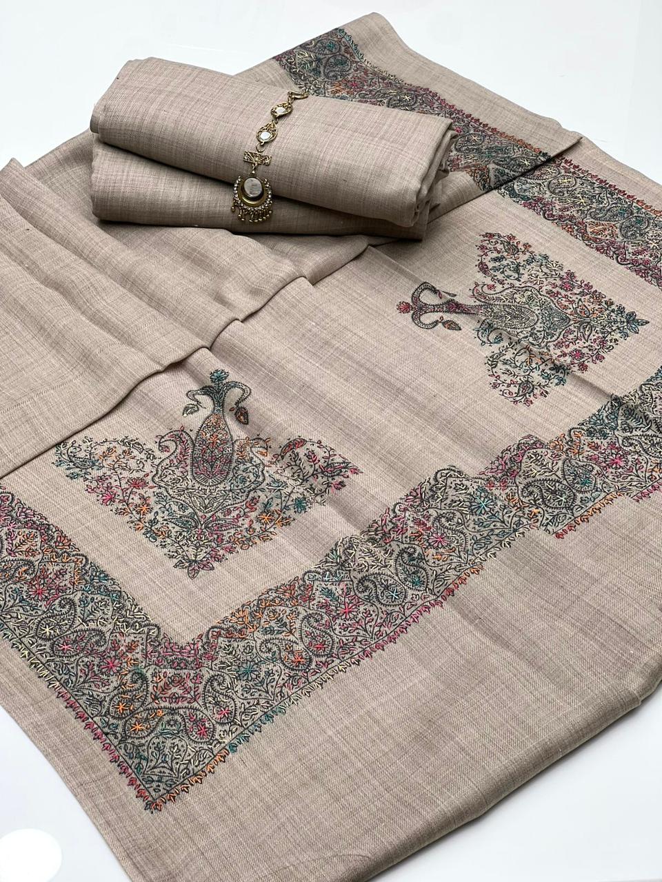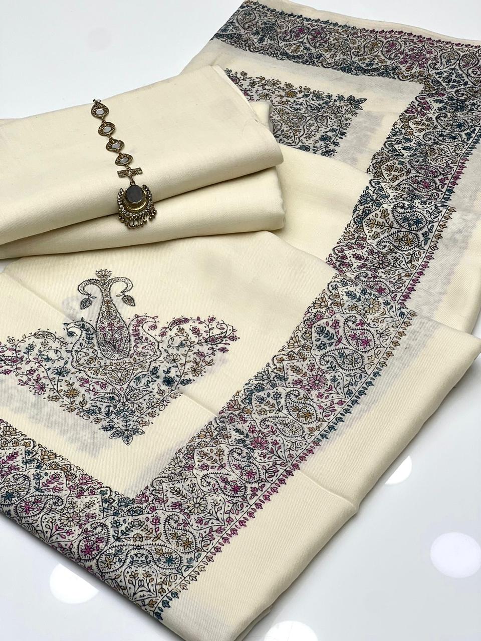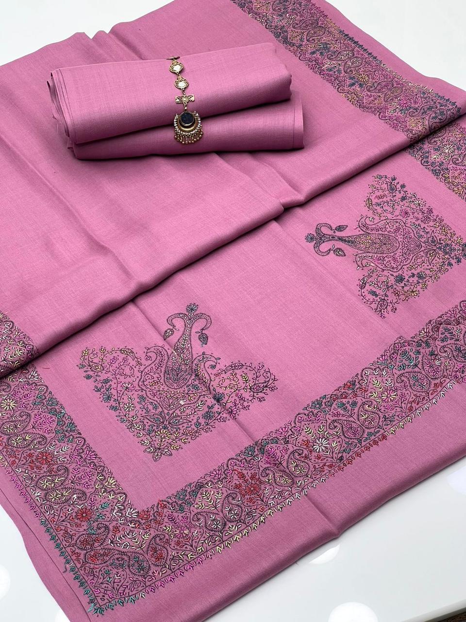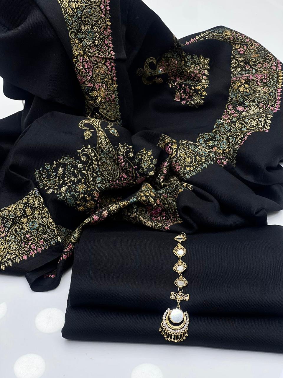 Simple Shirt And Trouser With Hand Made Kashmiri Pashmina Shawl Excellent Quality Soft 72 Grade Pashmina 3 Pieces Full Suit